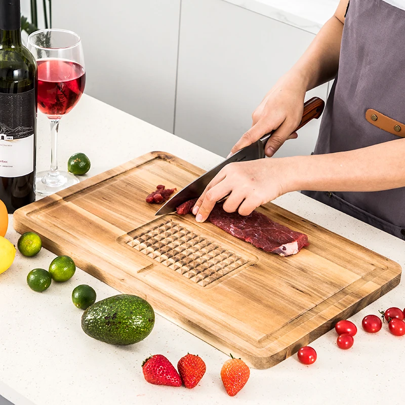 Premium Meat Cutting Board Heavy Duty Chopping Block Steak Carving Board with Juice Groove and Spikes For Stabilizes Meat | ||||||||