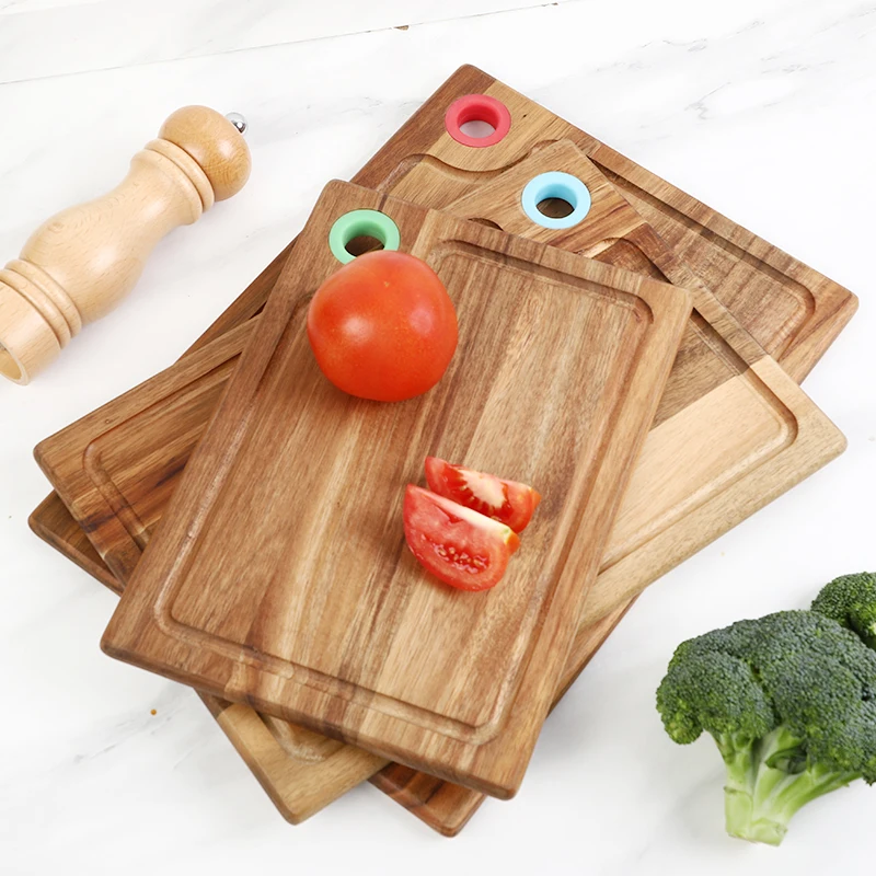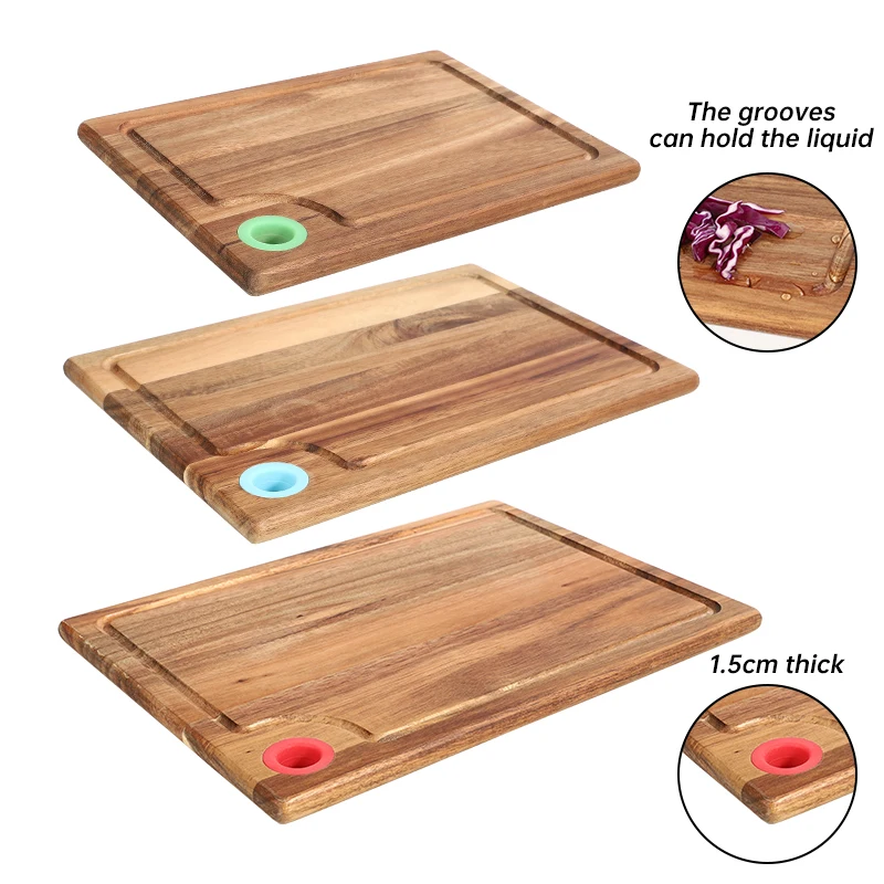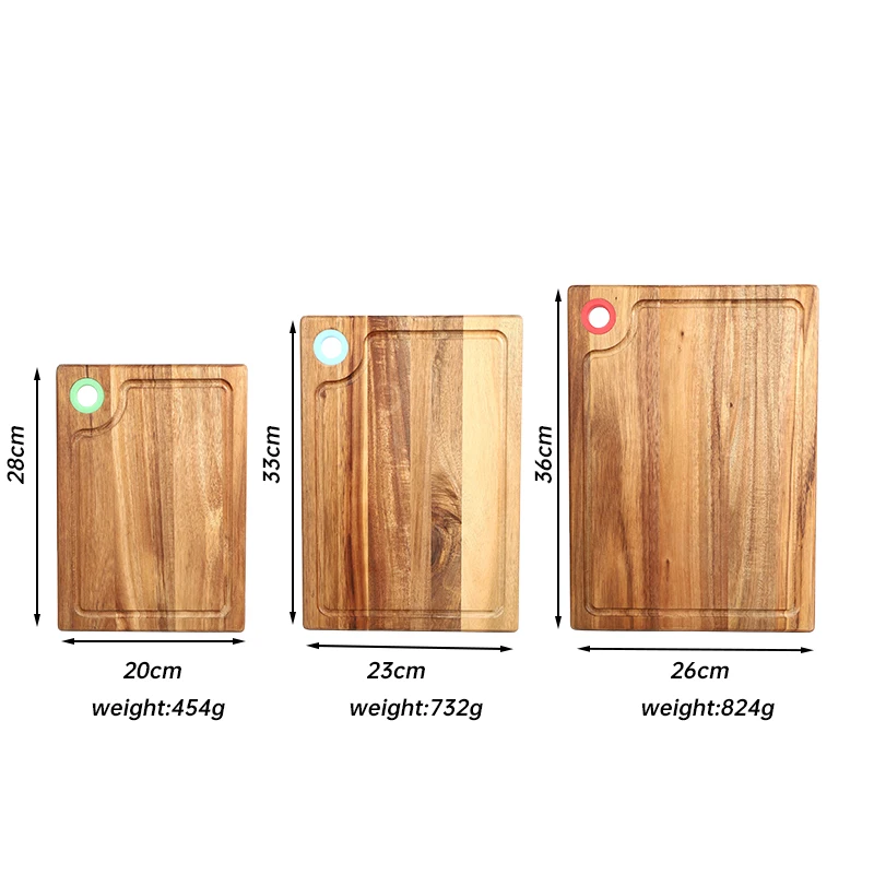 Natural Acacia Wooden Boards for Kitchen Acacia Cutting Board Set of 3 with Silicone Ring | ||||||||