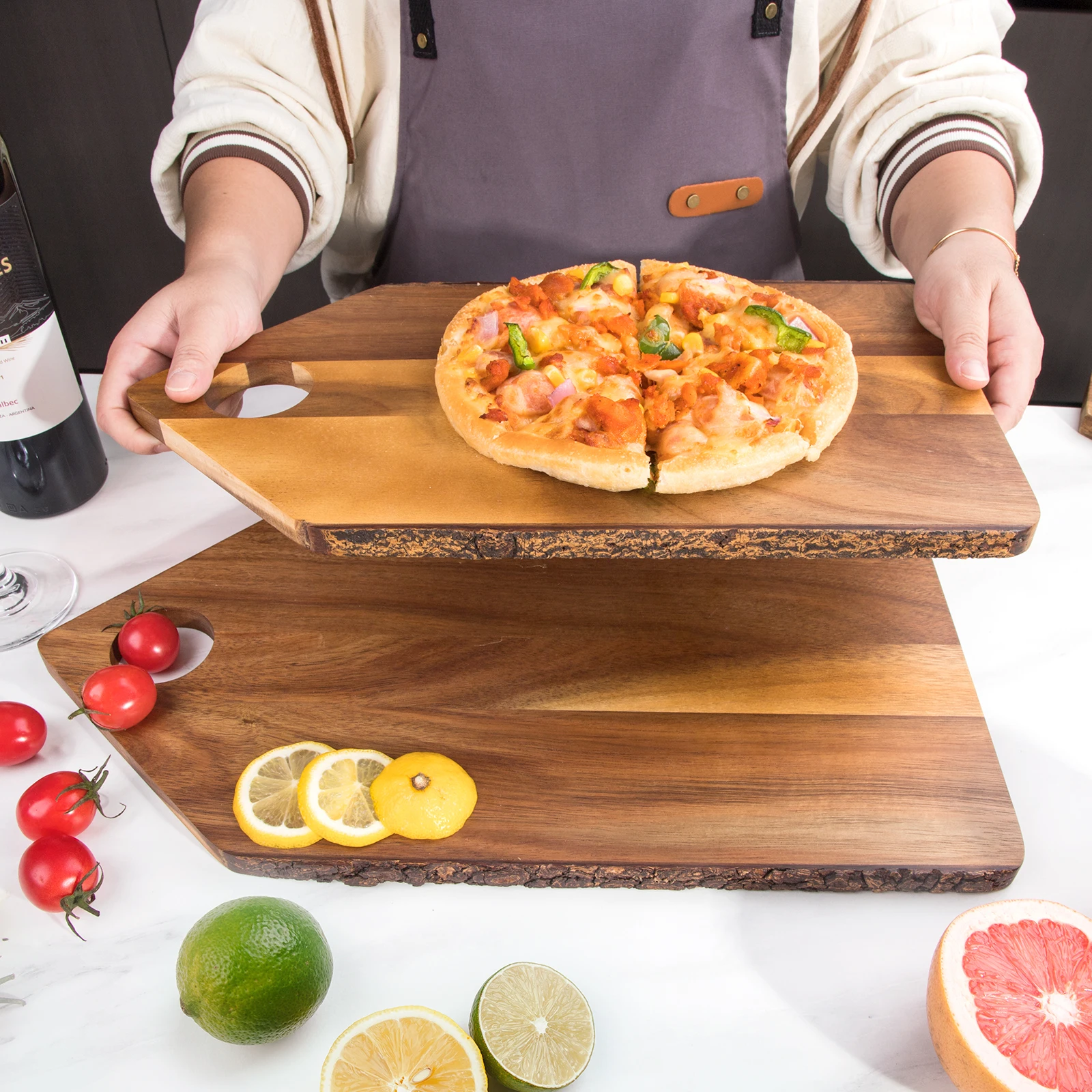 Factory Price Vegetable Cutting Board Acacia Wood Tree Bark Chopping Board Wooden Set for Serving Use | ||||||||