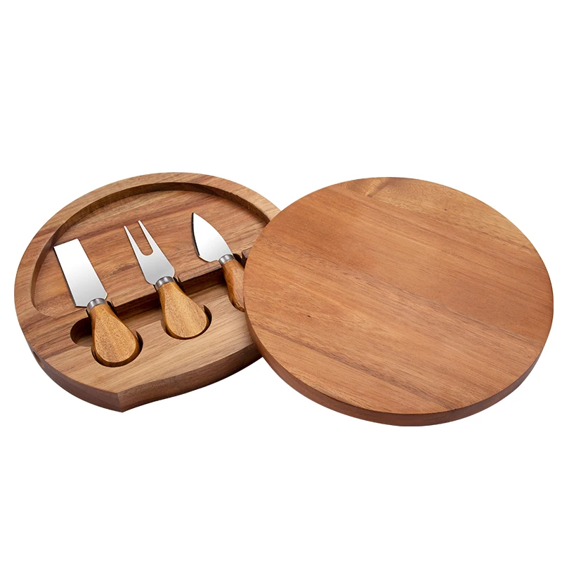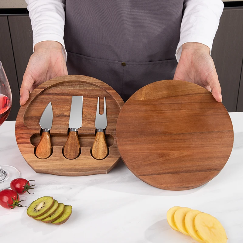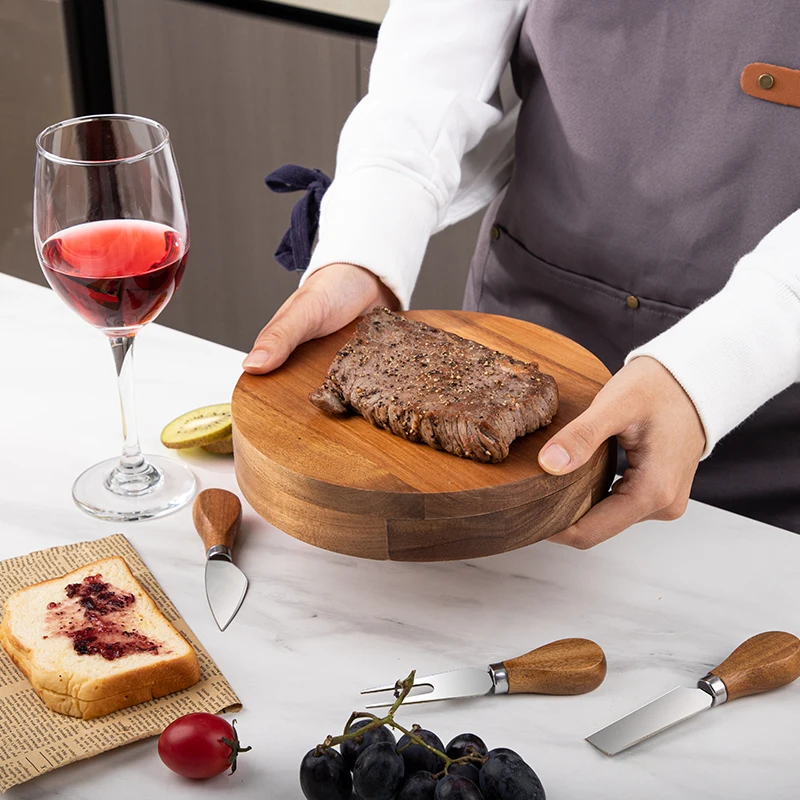 China Wholesale Round Tray Natural Rubber Wood Cheese Board Charcuterie Board and Knife Set | ||||||||