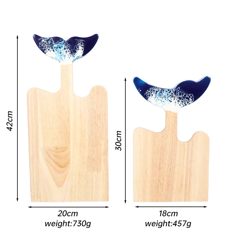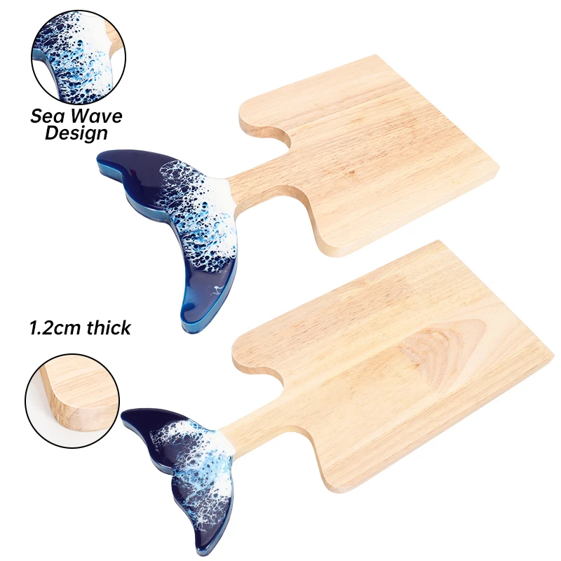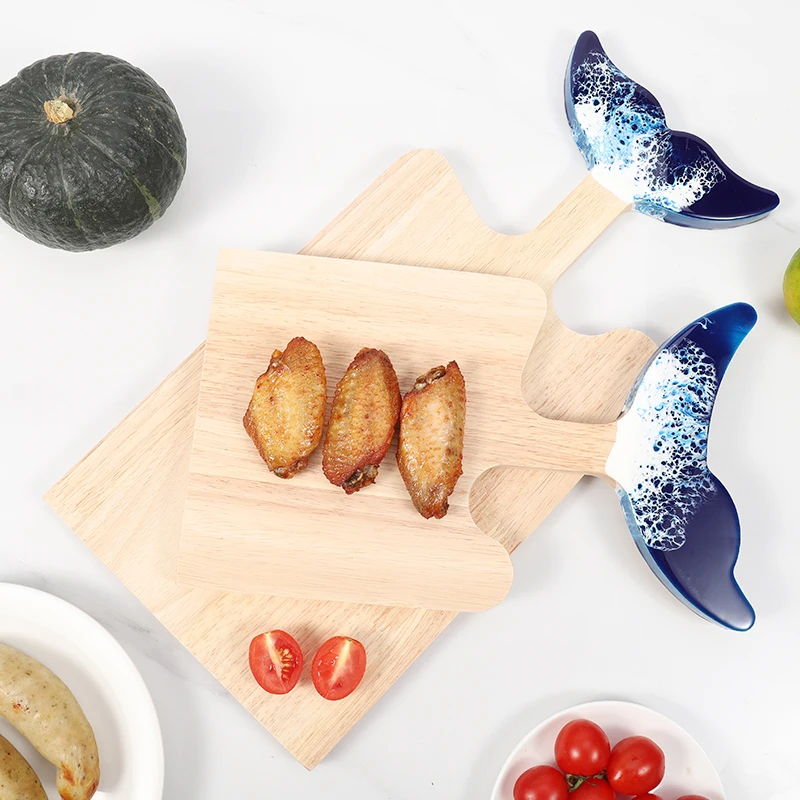 Rubber Wood Charcuterie Board Chopping Blocks Ocean Beach Fishtail Design Epoxy Resin Cutting Board with Handle | ||||||||