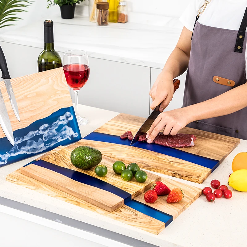 Custom New Design Olive Wood And Epoxy Resin Cutting Serving Board | ||||||||