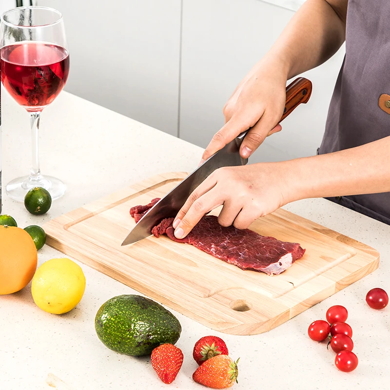 Wholesale Rectangle Kitchen Rubber Wood Meat Chopping Cutting Board With Juice Groove | ||||||||