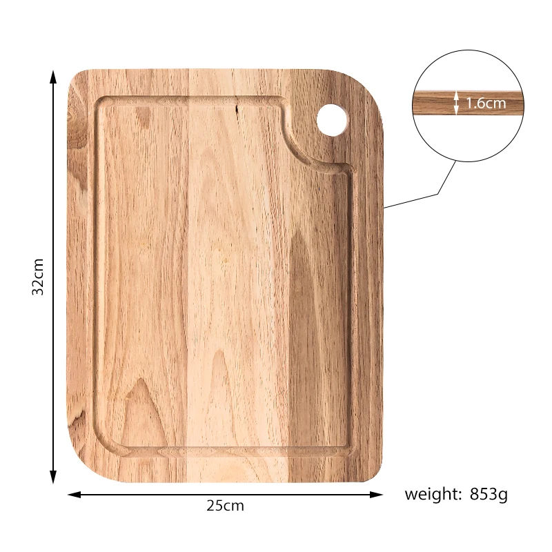 Item: | Rubber Wooden Chopping Board with Juice Groove and Hole | |||||||