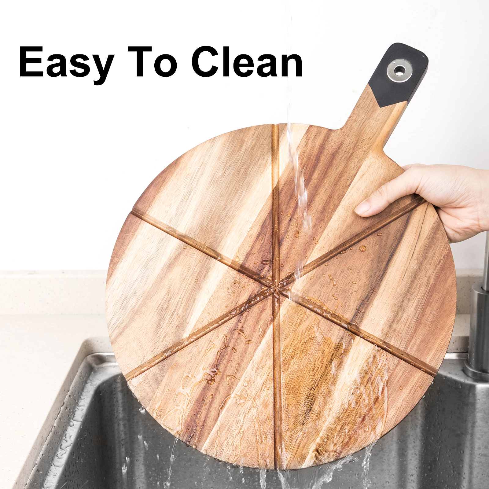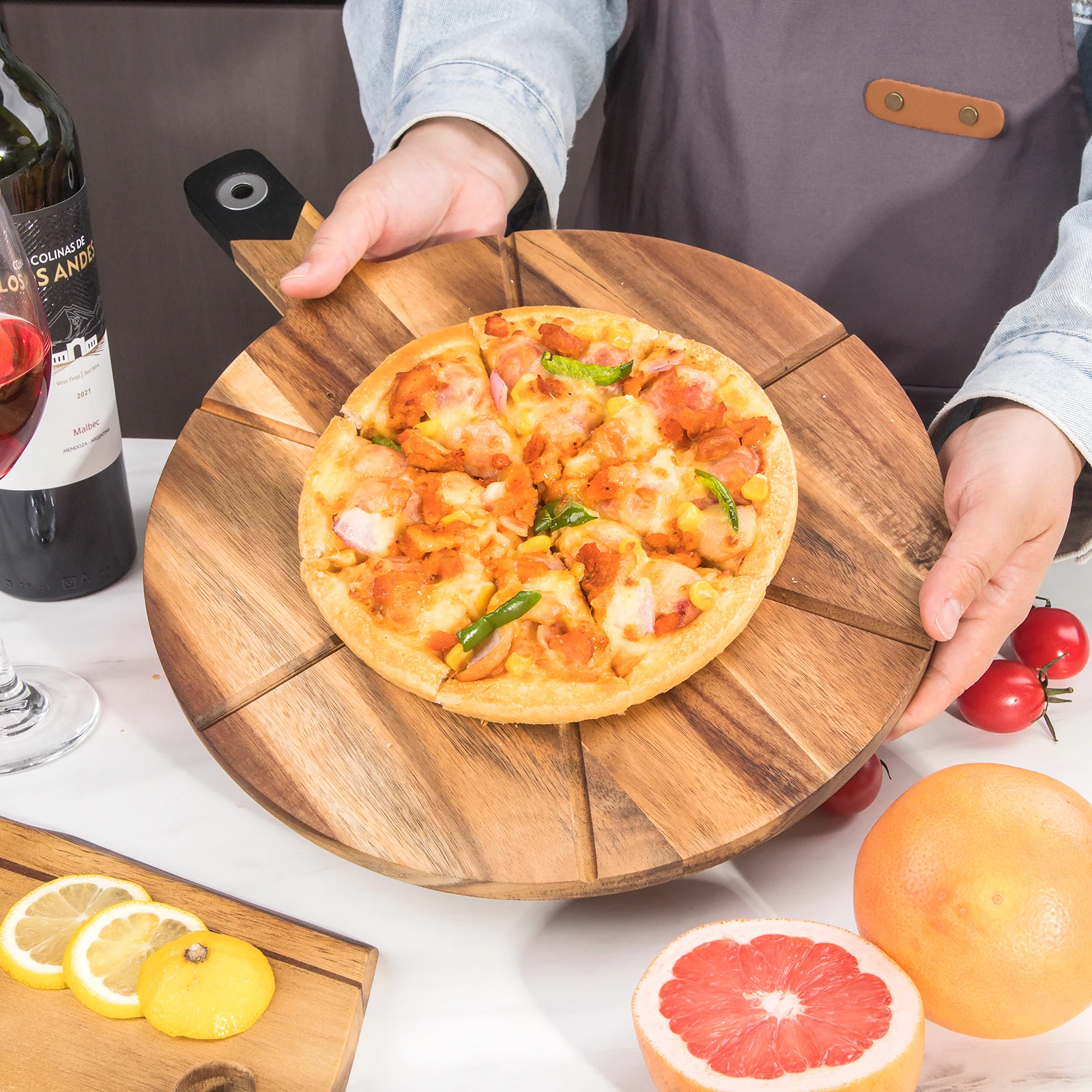 Manufacturer Acacia Cutting Board Wood Round Pizza Serving Tray Cutting Slicing Board with Handle | ||||||||