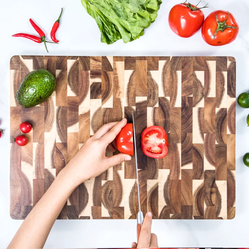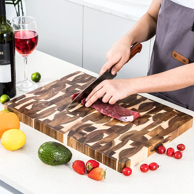 Premium Kitchen End Grain Rectangle Acacia Wooden Cutting Chopping Board for Vegetable Meat | ||||||||