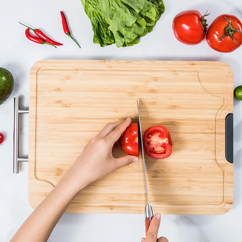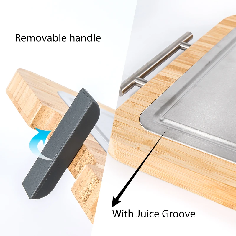Tidy Board Meal Prep System Bamboo Cutting Board with Juice Slot Cheese Board Maple with Handle | ||||||||