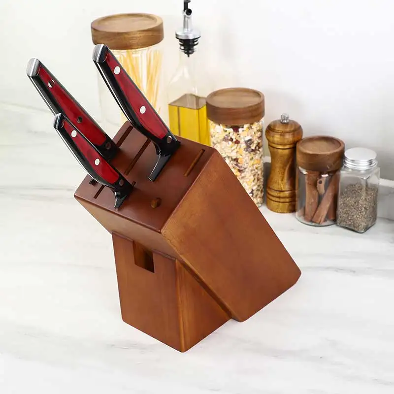 Natural Wooden Knives Accessories Nature Acacia Wood with 8 Slots Kitchen Knife Block Holder | ||||||||