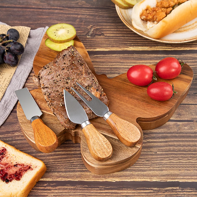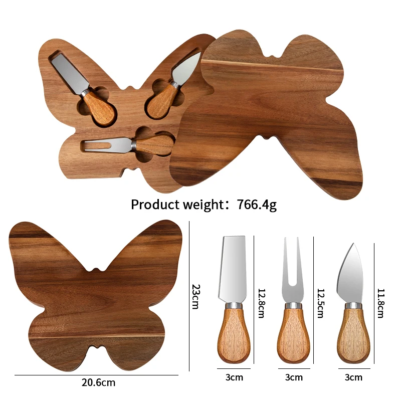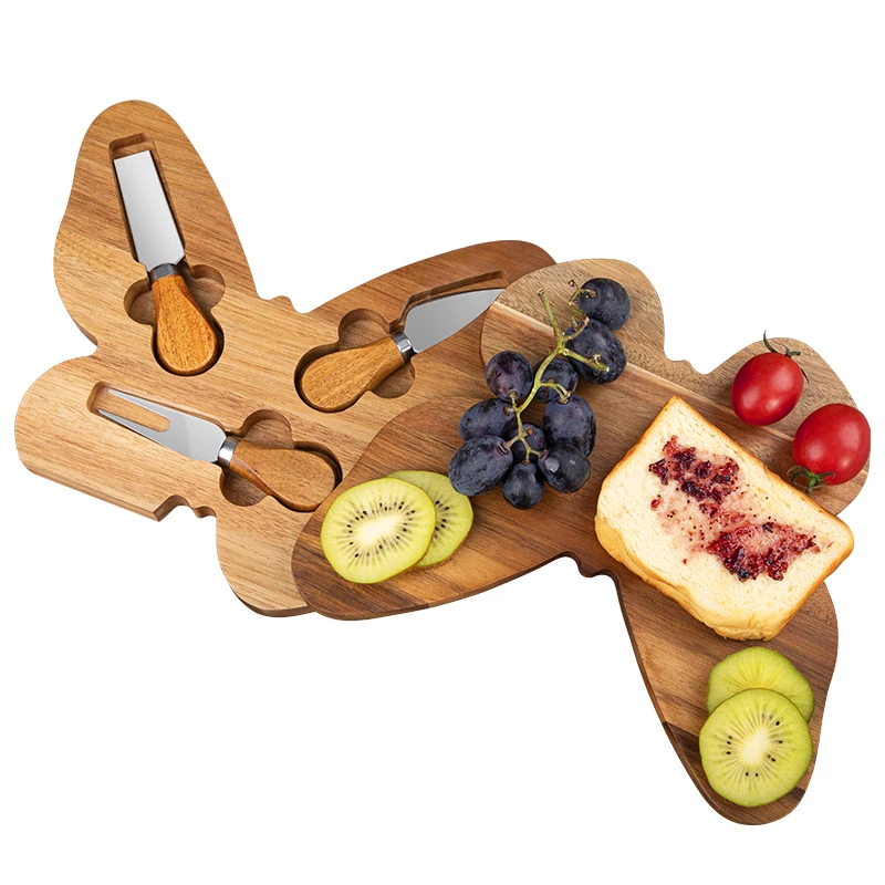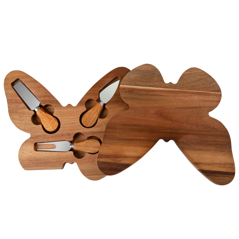 Wholesale Natural Original Butterfly Shape Cheese Board with 4 Stainless Steel Cheese knives | ||||||||