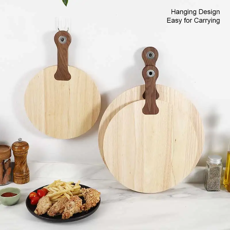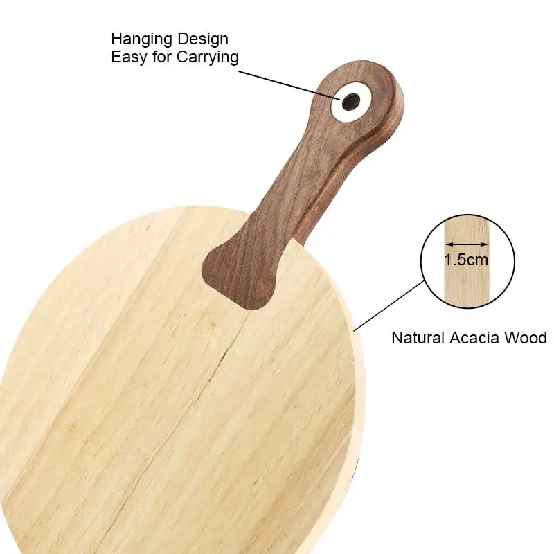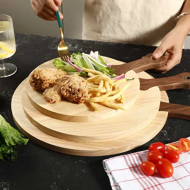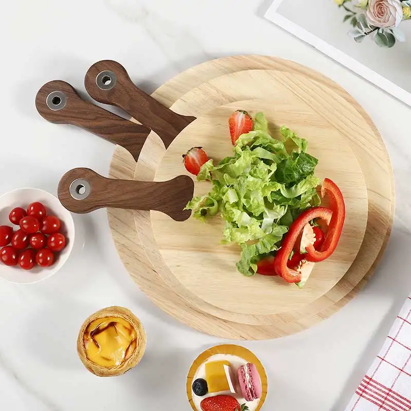 13 Inch Round Shape Rubber and Walnut Wood Chopping Serving Board Pizza Peel Cutting Cheese Board With Handle | ||||||||