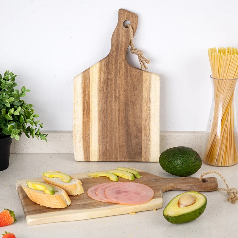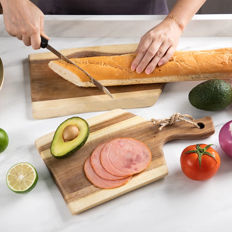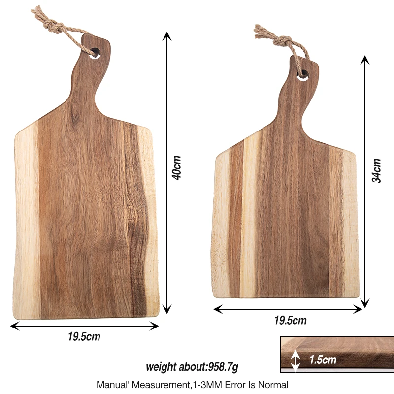 2 PCS Rectangle Multifunction Wood Cheese Pizza Cutting Serving Board Tray Set with Handle | ||||||||