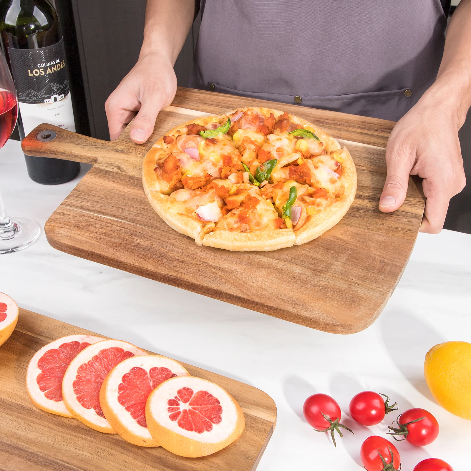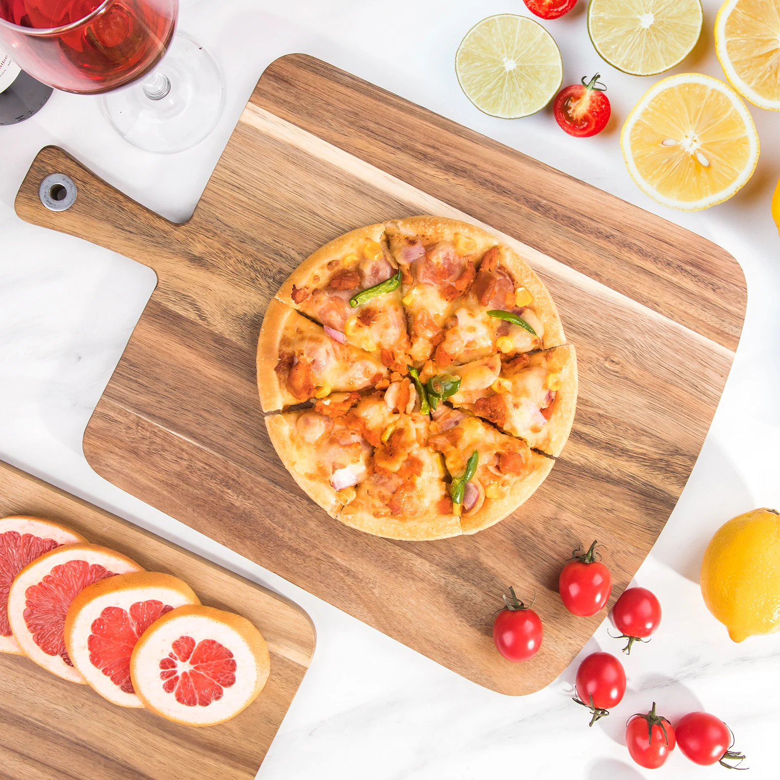 Wholesale Large Cheese Cutting Boards Charcuterie Boards Acacia Pizza Serving Board with Handle | ||||||||