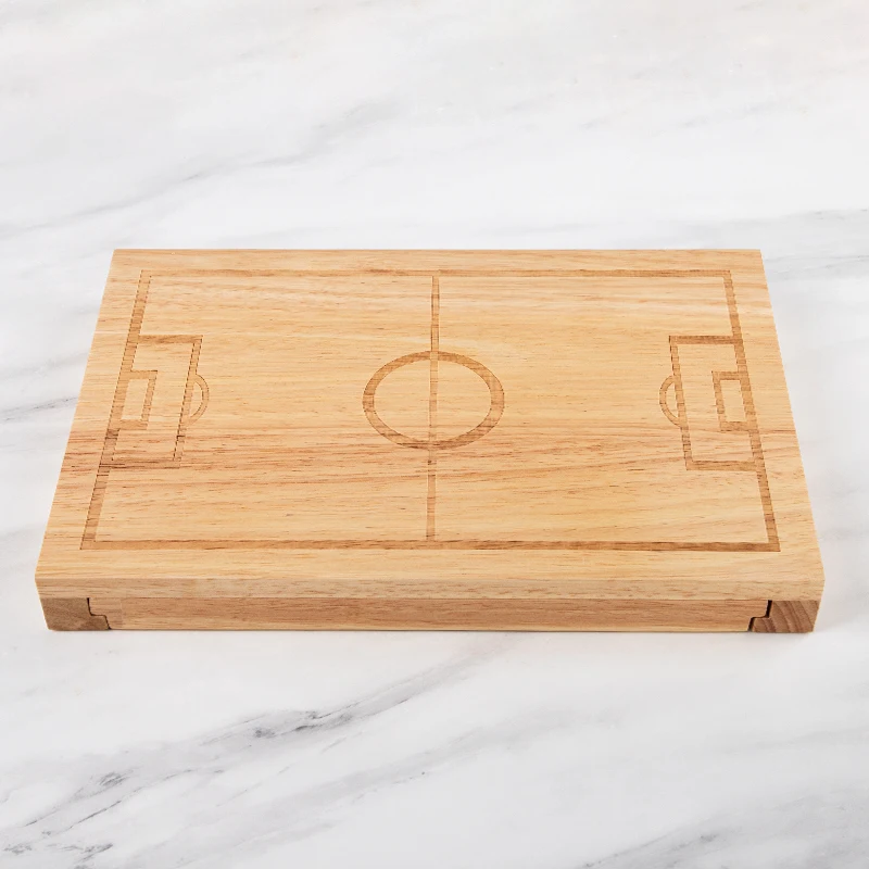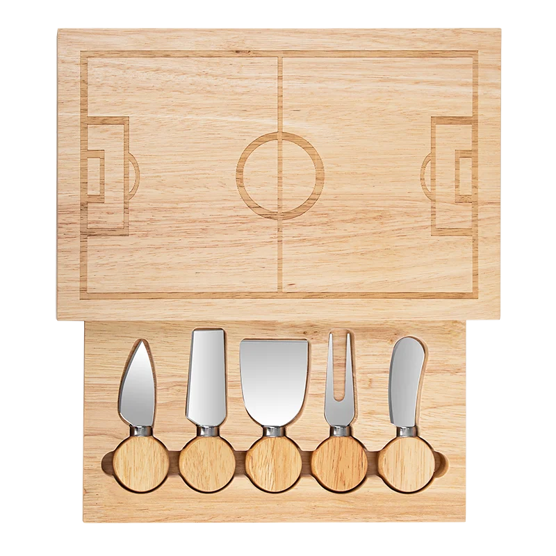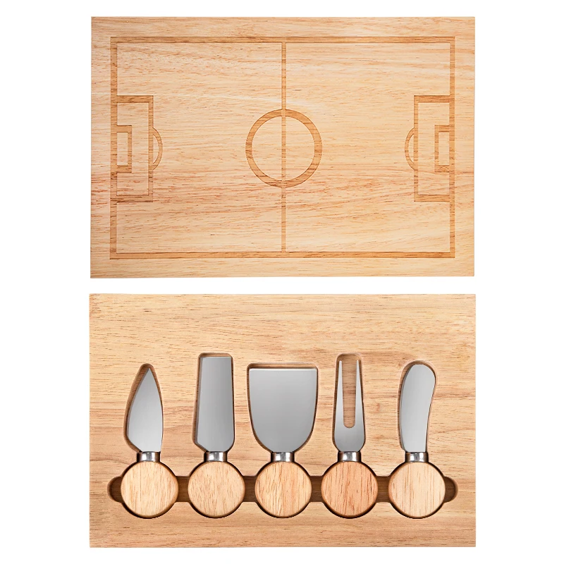 Shape of Football Court Personalized Charcuterie Rubber Wood Cutting Cheese Board and 5 Knife Set | ||||||||