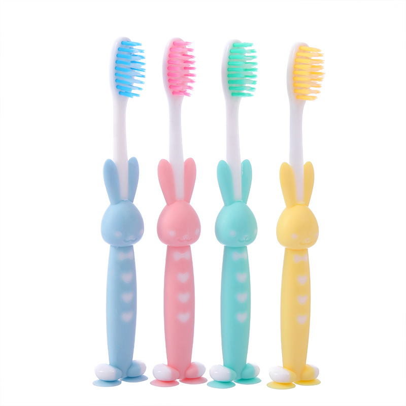 tiktok same style macaron bear rabbit children's cartoon toothbrush bamboo charcoal soft fur 4 pcs factory direct supply