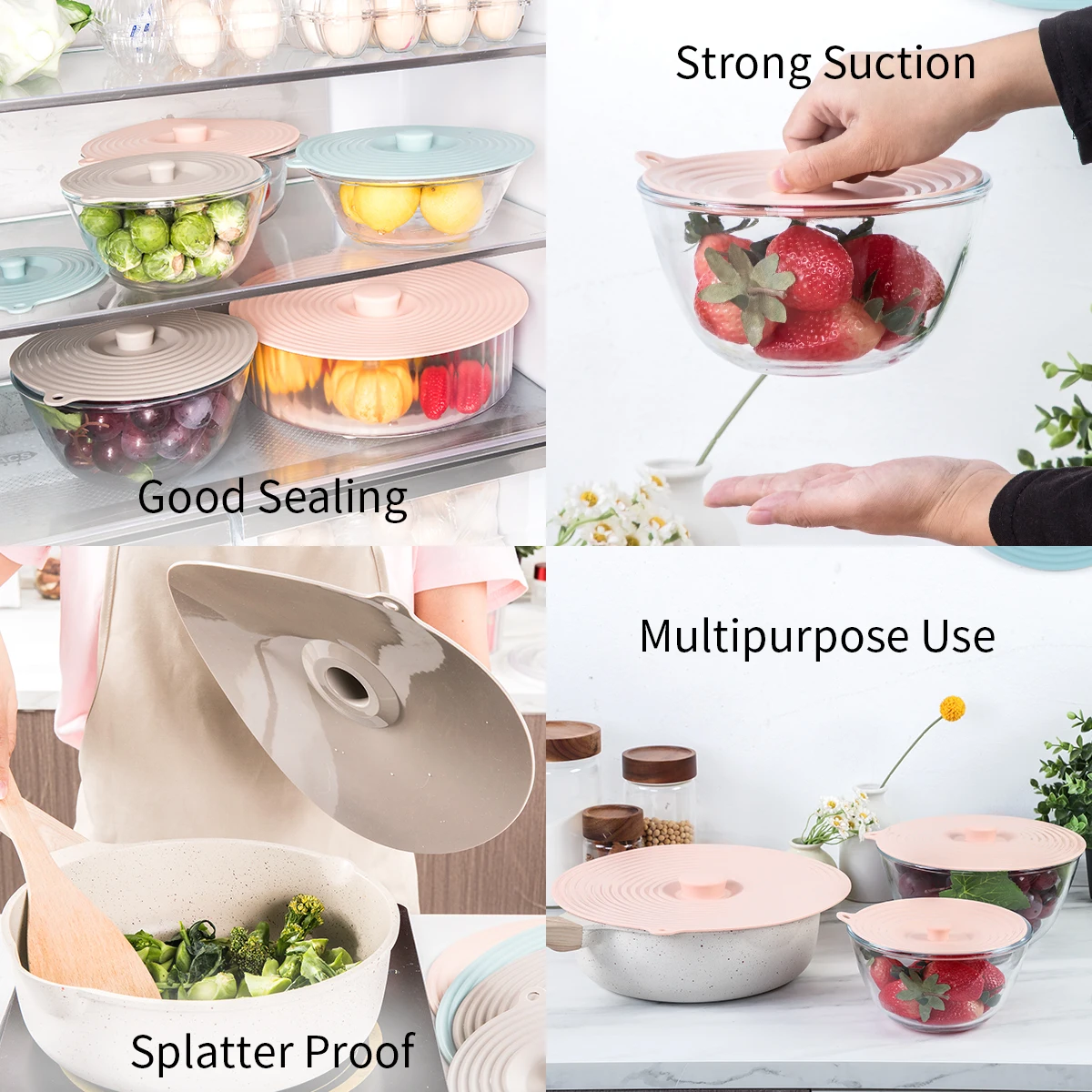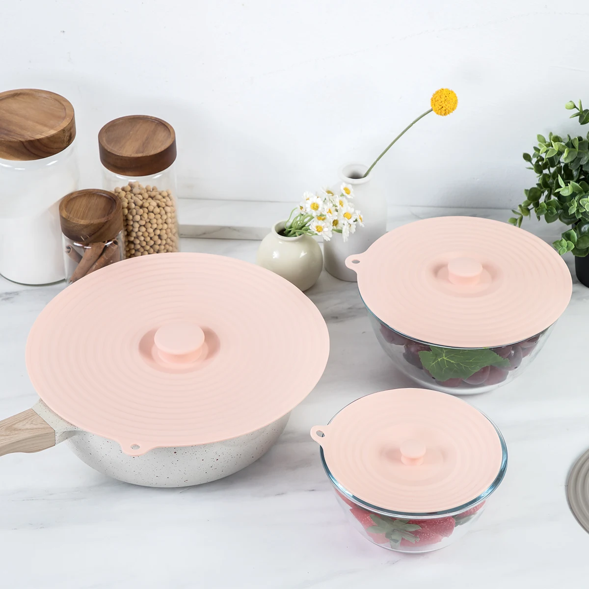Silicone Lids for Bowl Silicone Microwave Cover with 3 Sizes Reusable Heat Resistant Lids Fits Cups Bowls | ||||||||