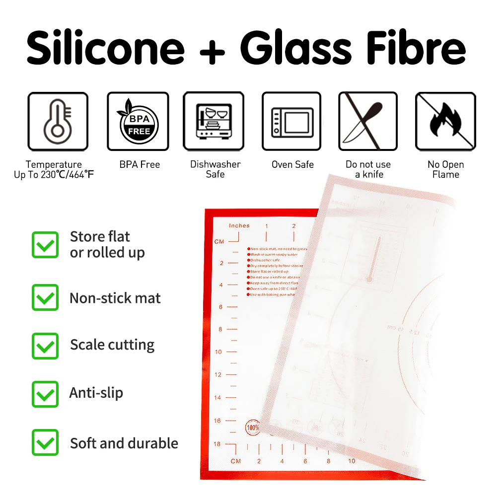 Extra Thick Silicone Baking Mat with Measurements Non-slip and Reusable For Cookies Bread Pastry | ||||||||