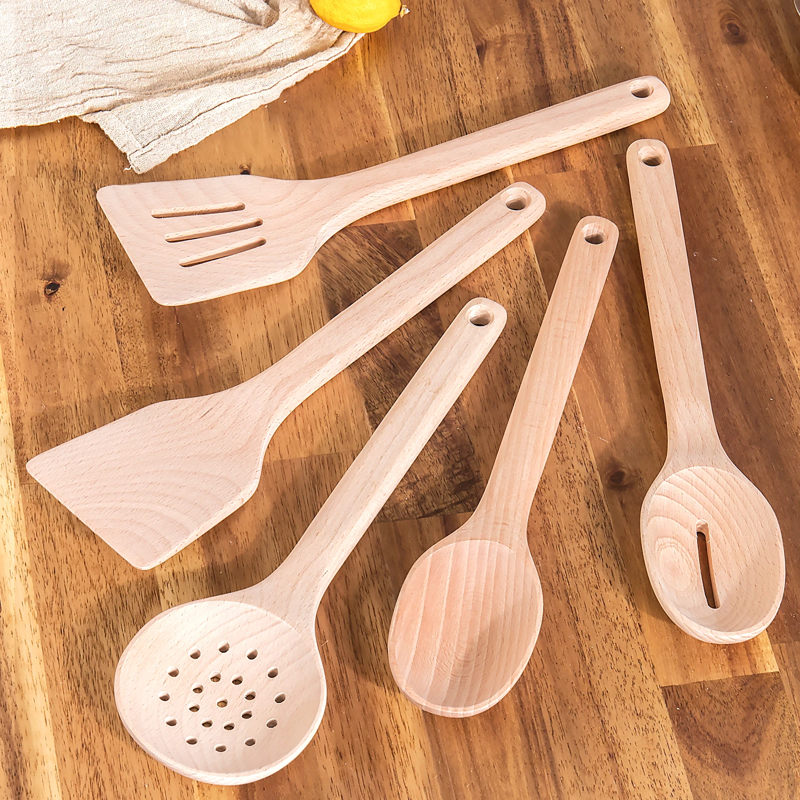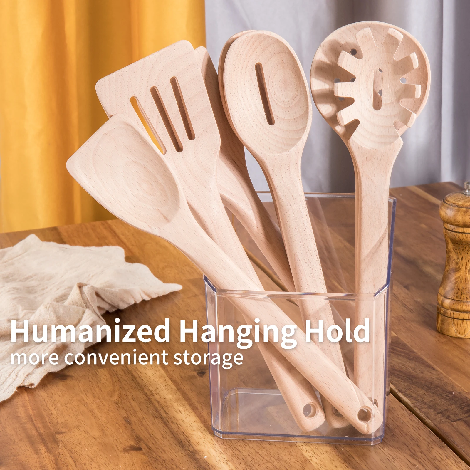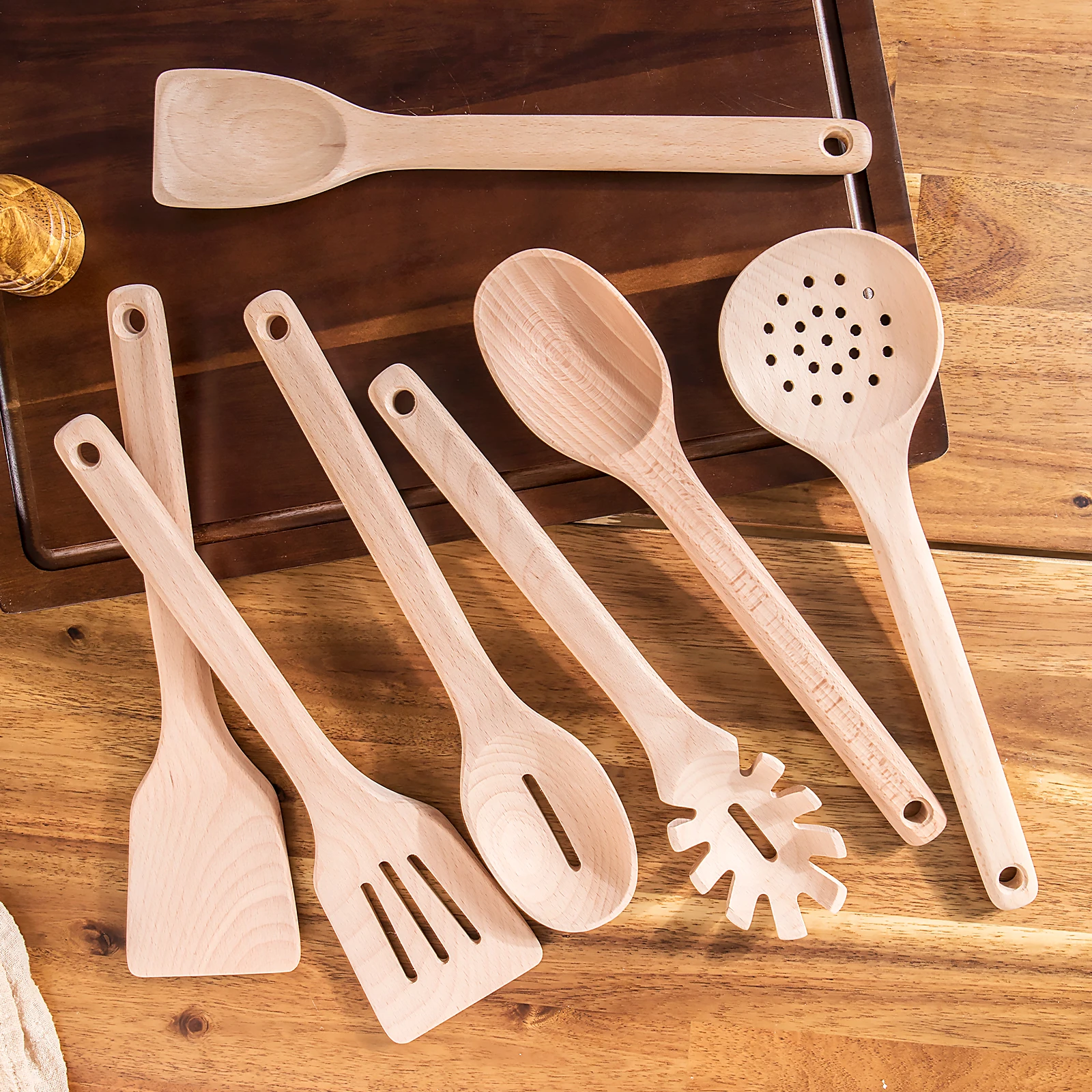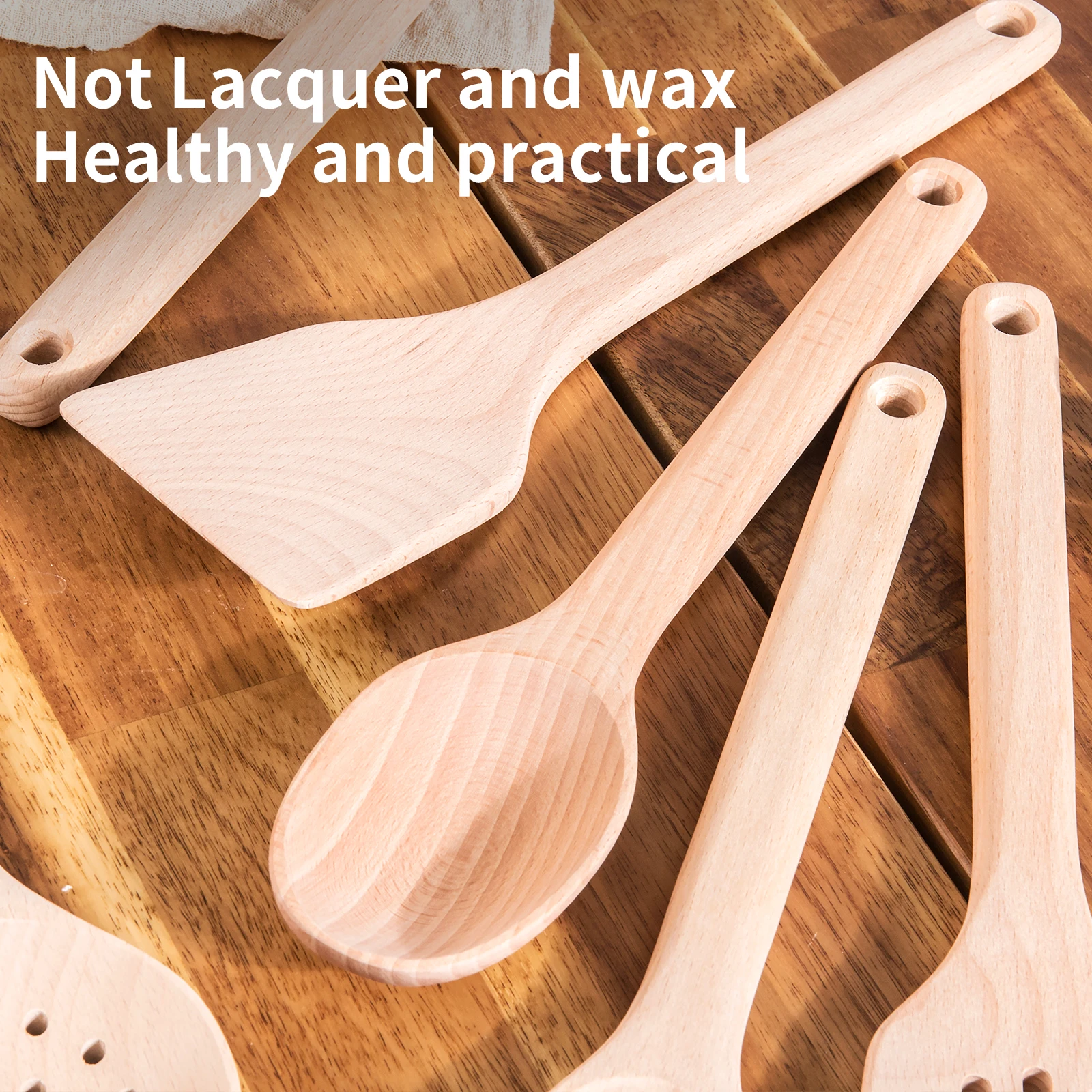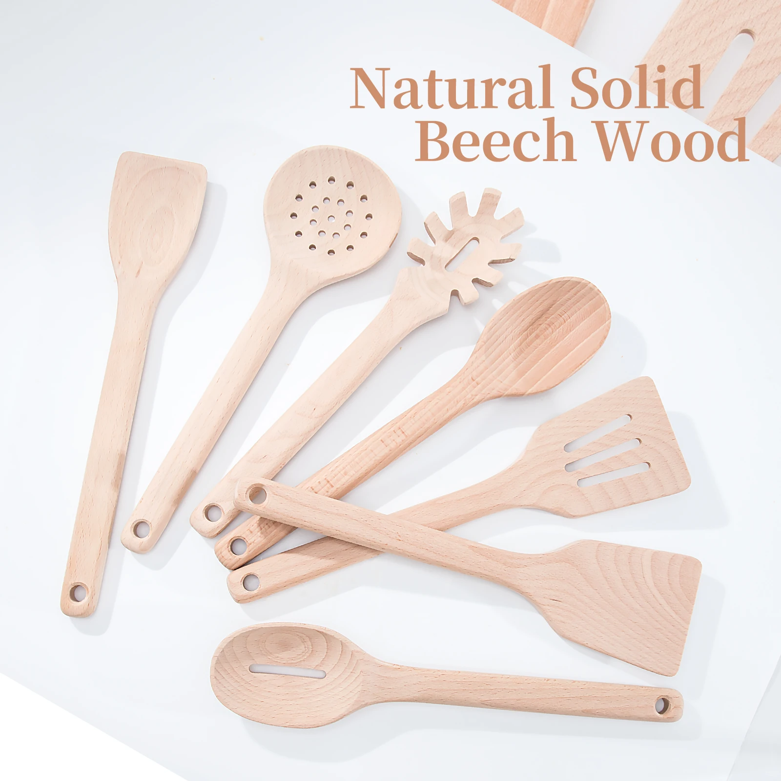 Wooden Spoons for Cooking Kitchen Utensil Set of 7 Beech Wood Non Scratch Wooden Cooking Utensils Set | ||||||||