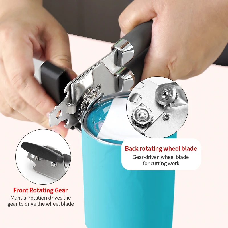 Heavy Duty Stainless Steel Smooth Edge Manual Hand Held Can Opener With Soft Touch Handle Rust Proof Handheld Easy Turn Knob | ||||||||