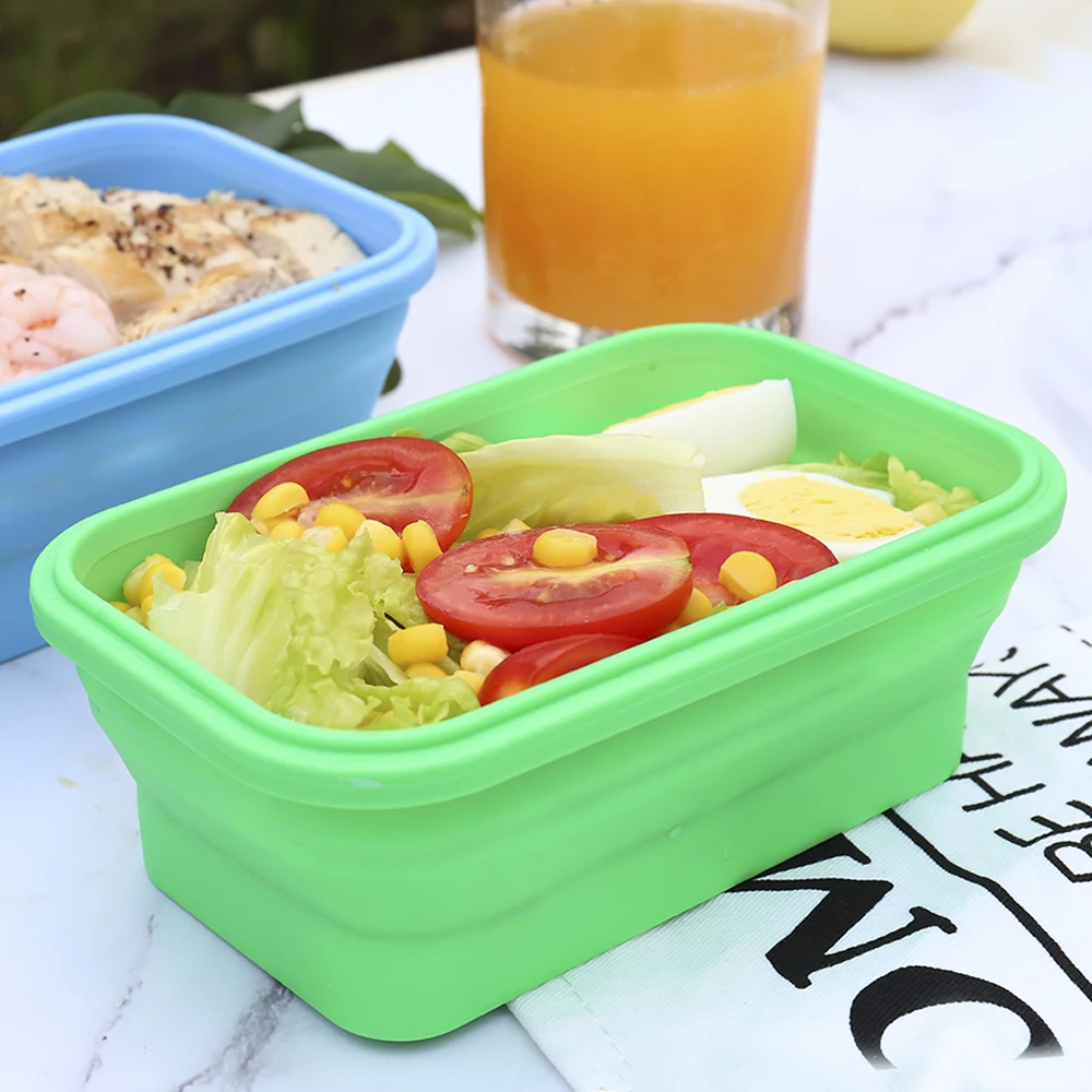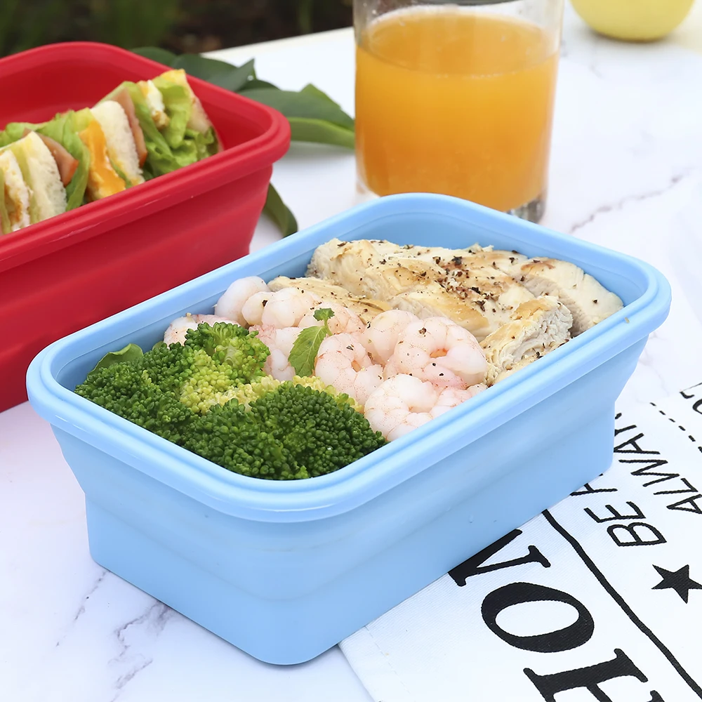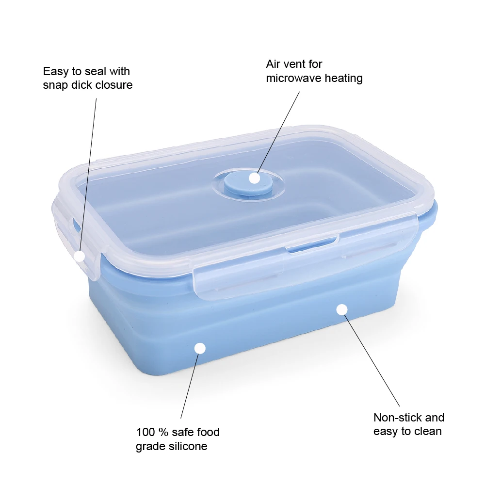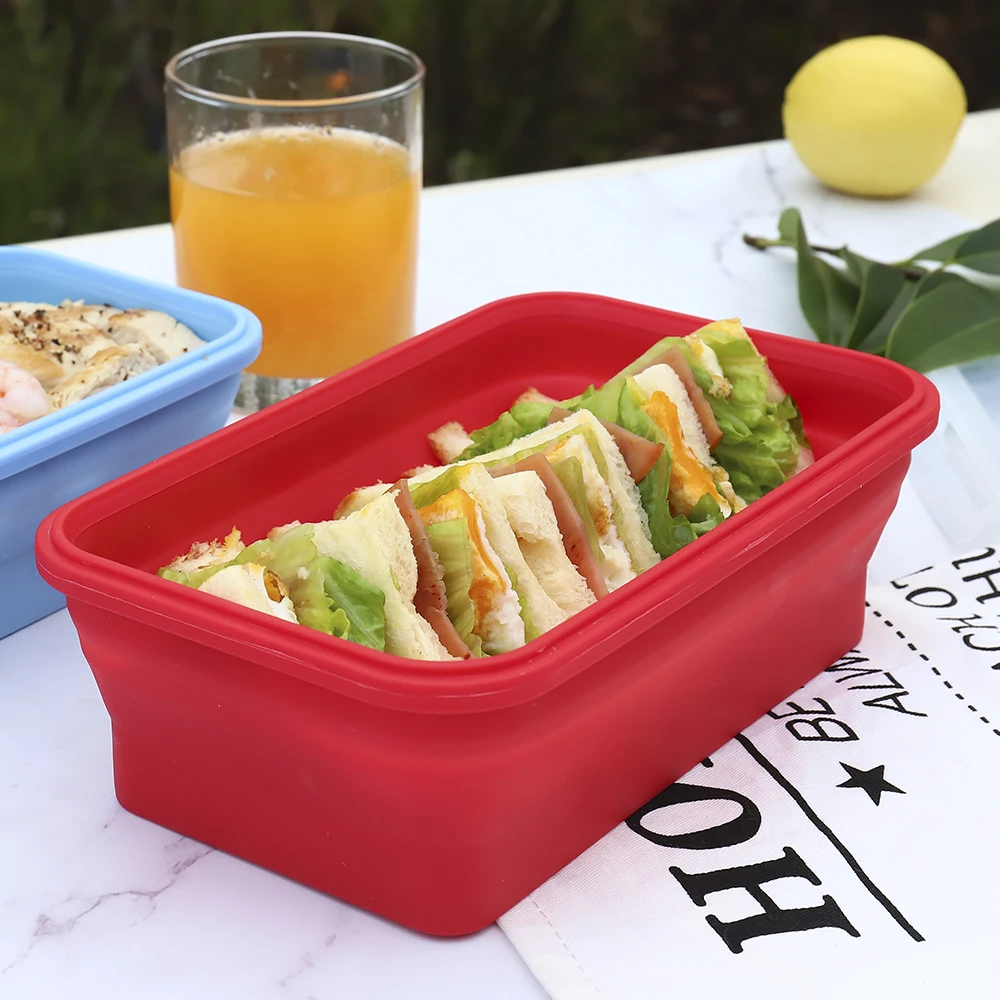 Collapsible Sandwich Container Silicone Lunch Container Bento Box with Plastic Lid Microwave Safe Camping Bowl | ||||||||