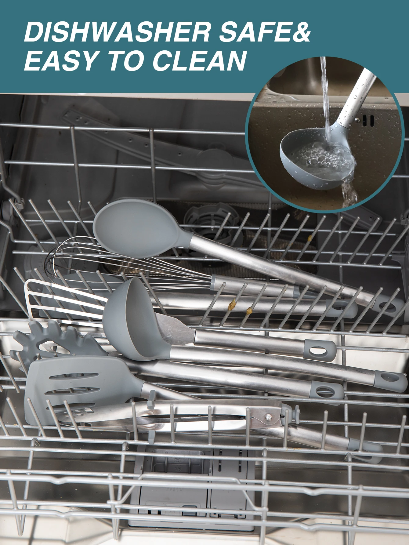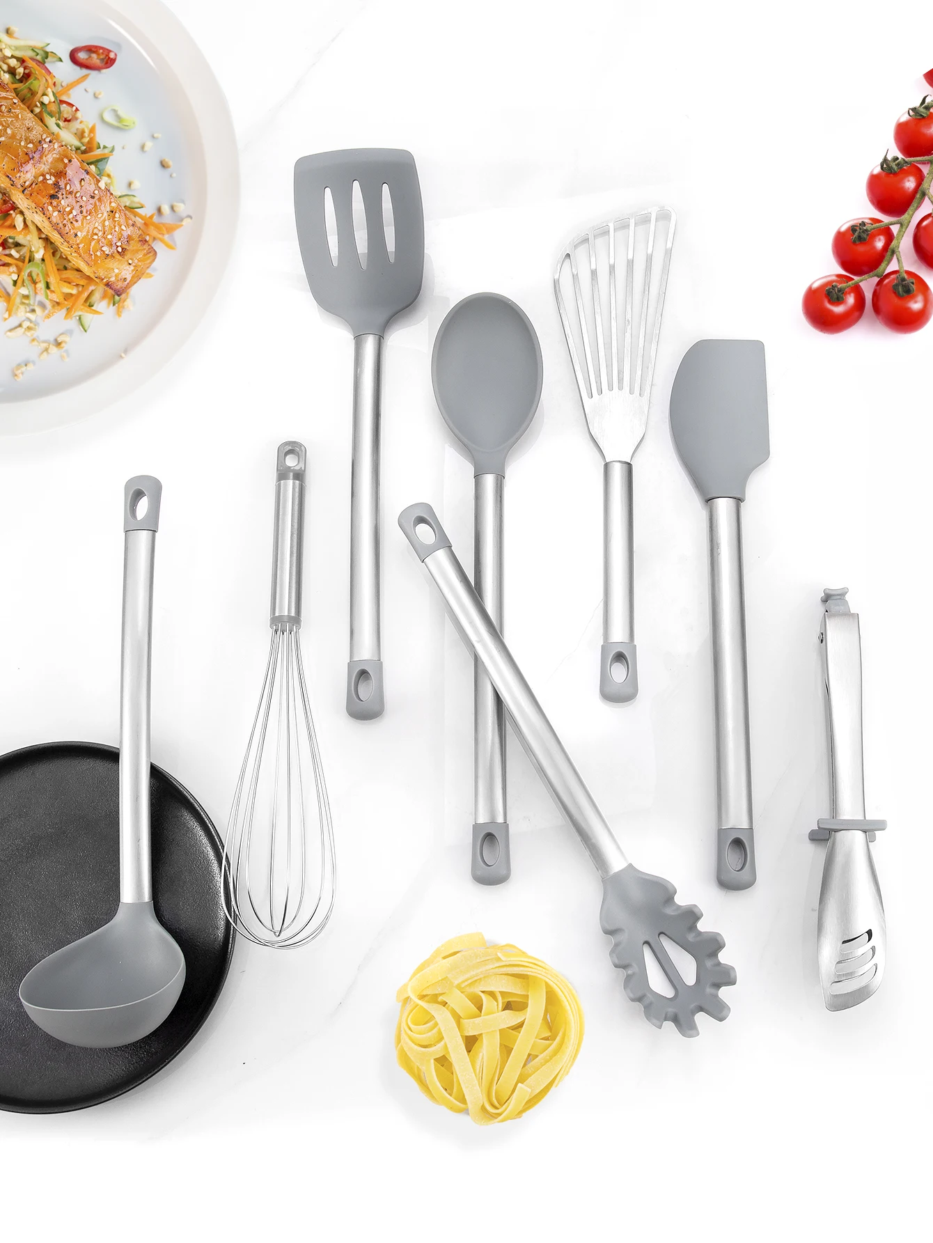 Silicone Kitchen Cooking Utensils Set with Stainless Steel Handle Spatula Set Utensil Set Kitchen Tools Gadgets for Cookware | ||||||||