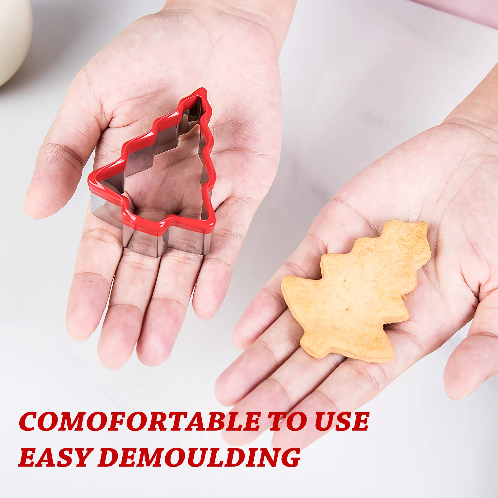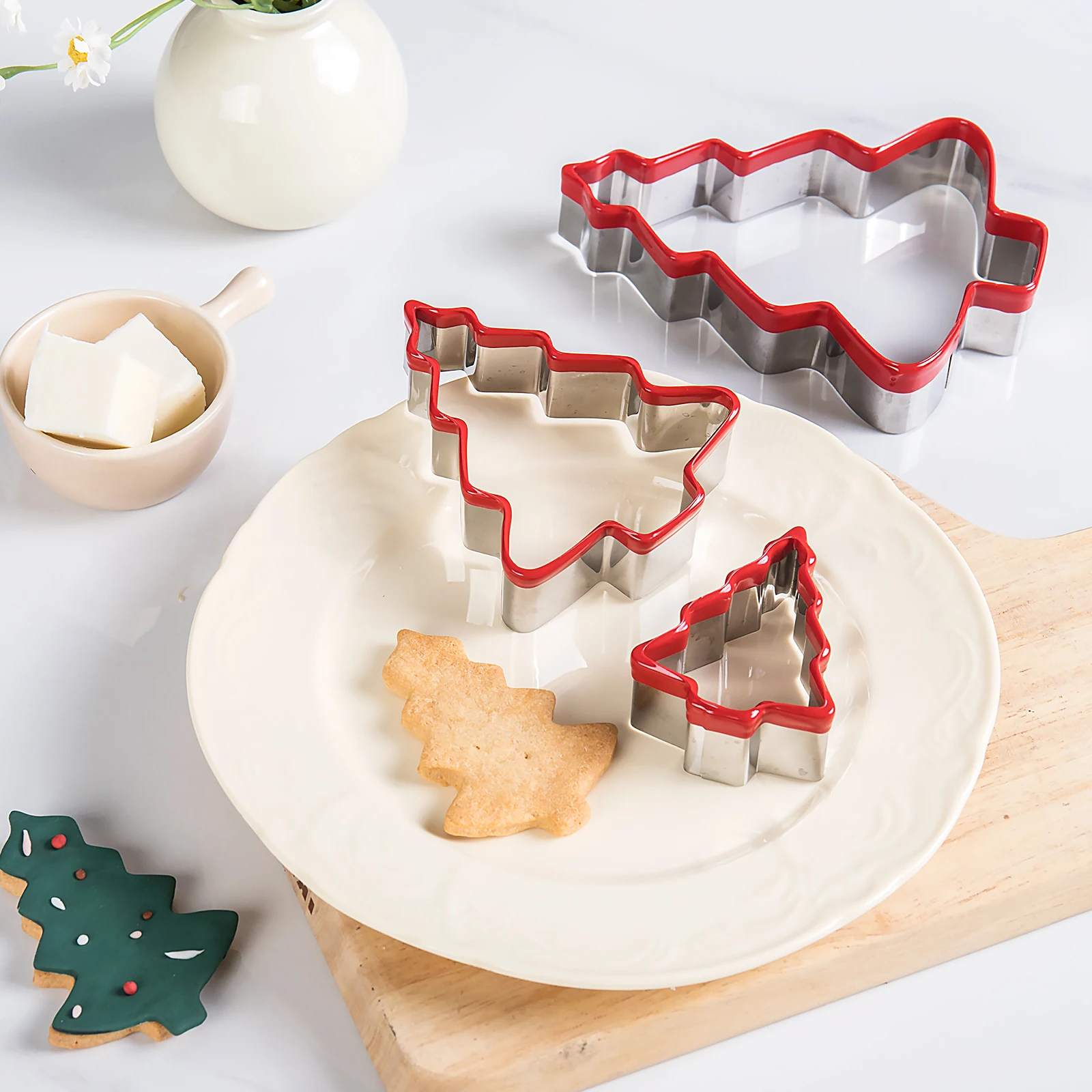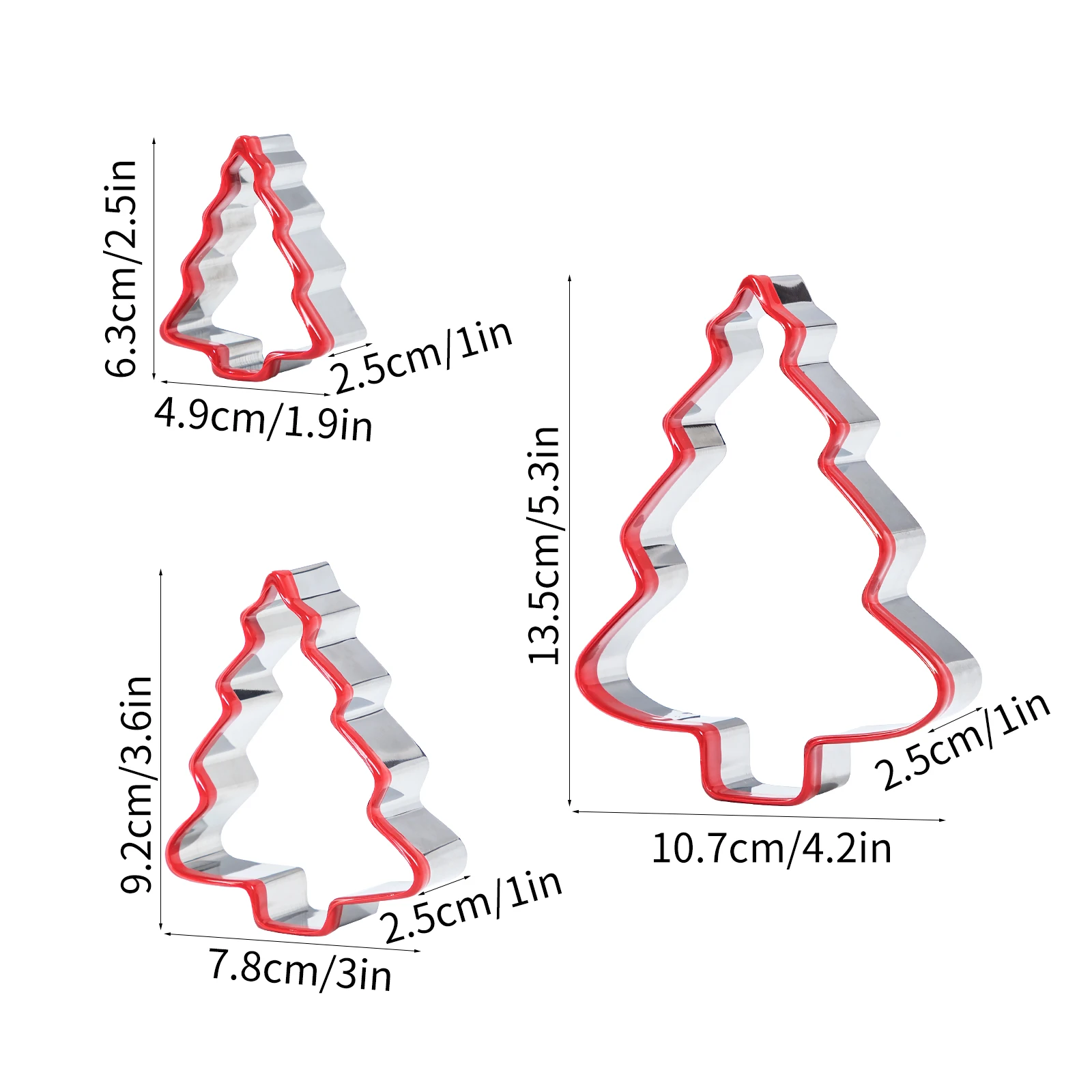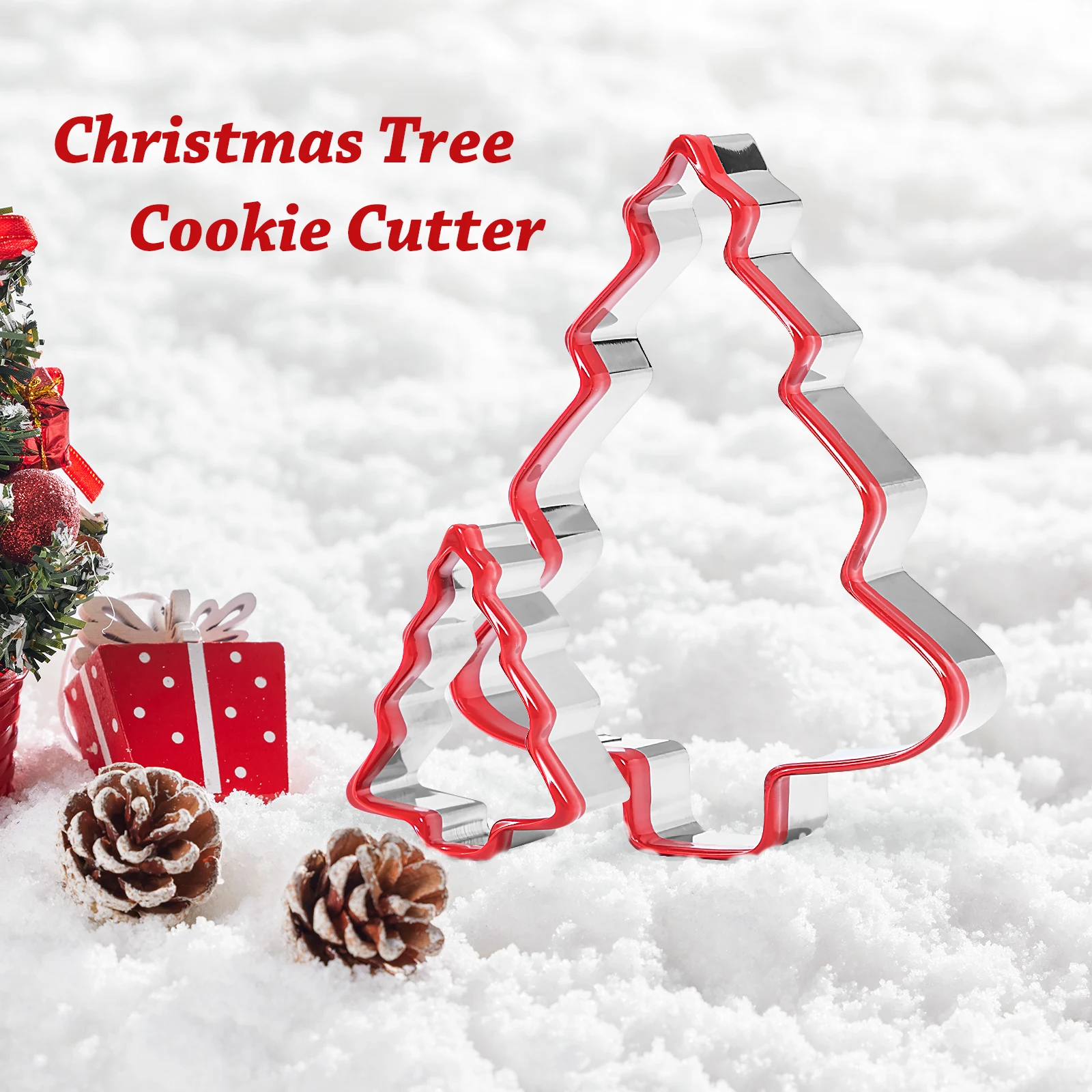 3PCS Stainless Steel Christmas Cookie Cutter Tools with Red Environmental PVC Christmas Tree Shape Moulds Set for Baking | ||||||||