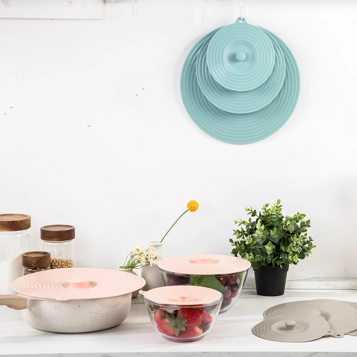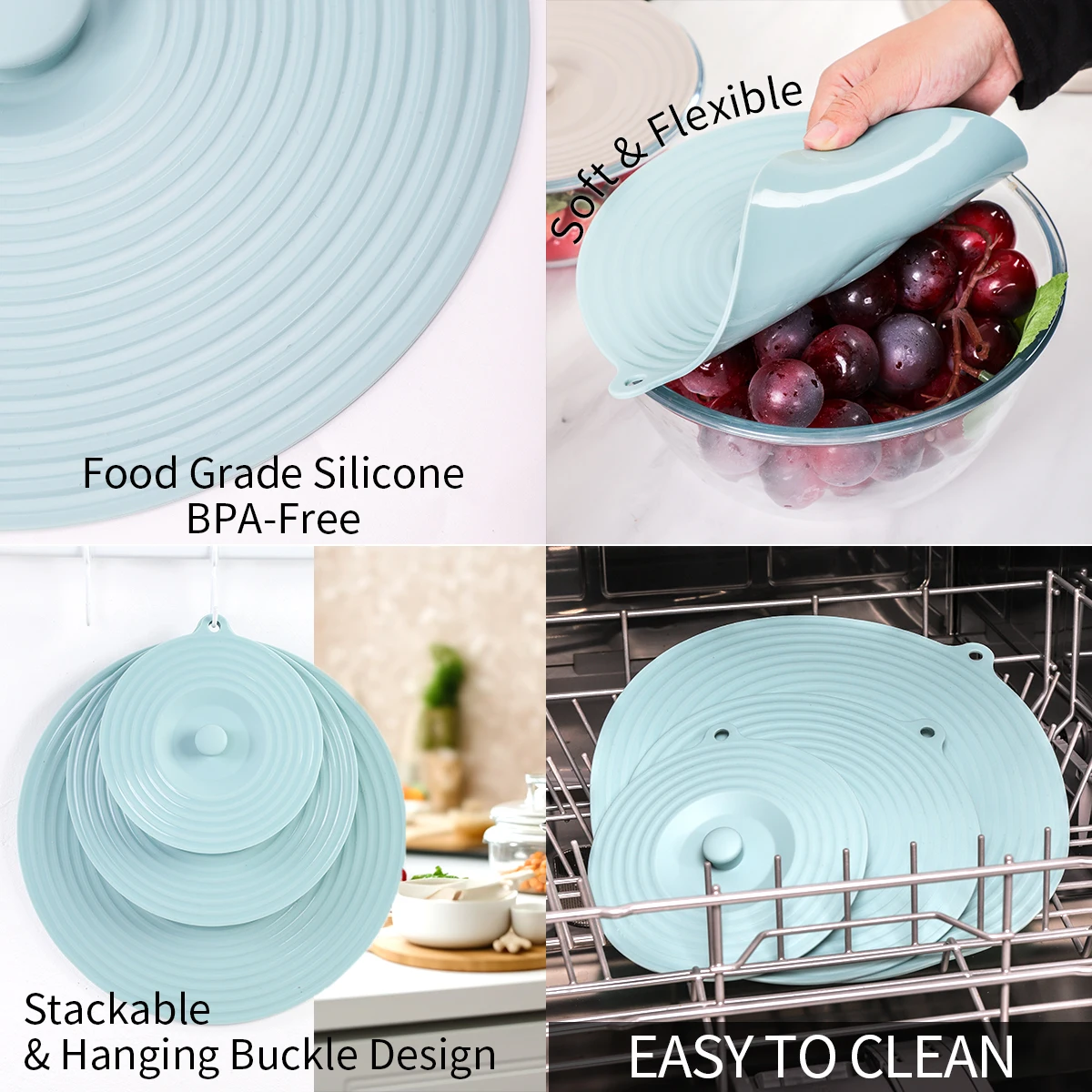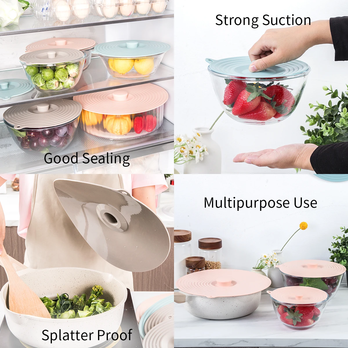 Food Safe Silicone Bowl Lids Set of 3 Reusable Suction Seal Covers for Bowls Silicone Cover for Pots and Cups | ||||||||