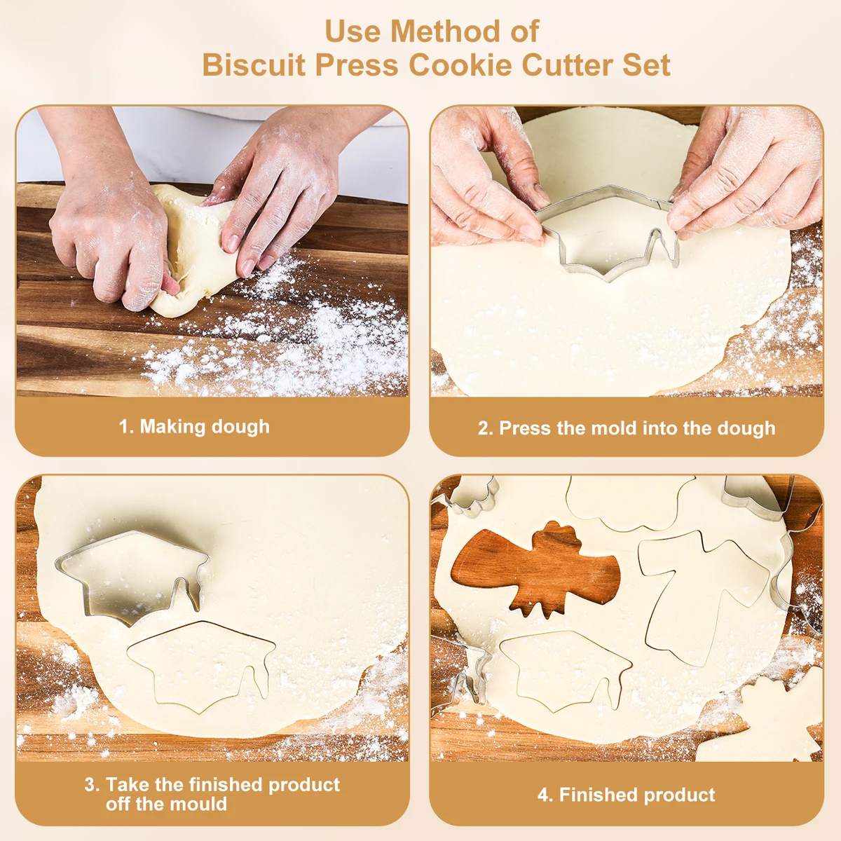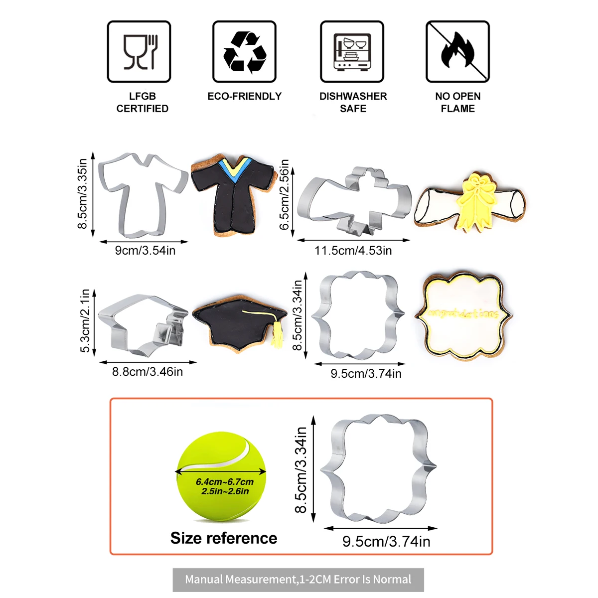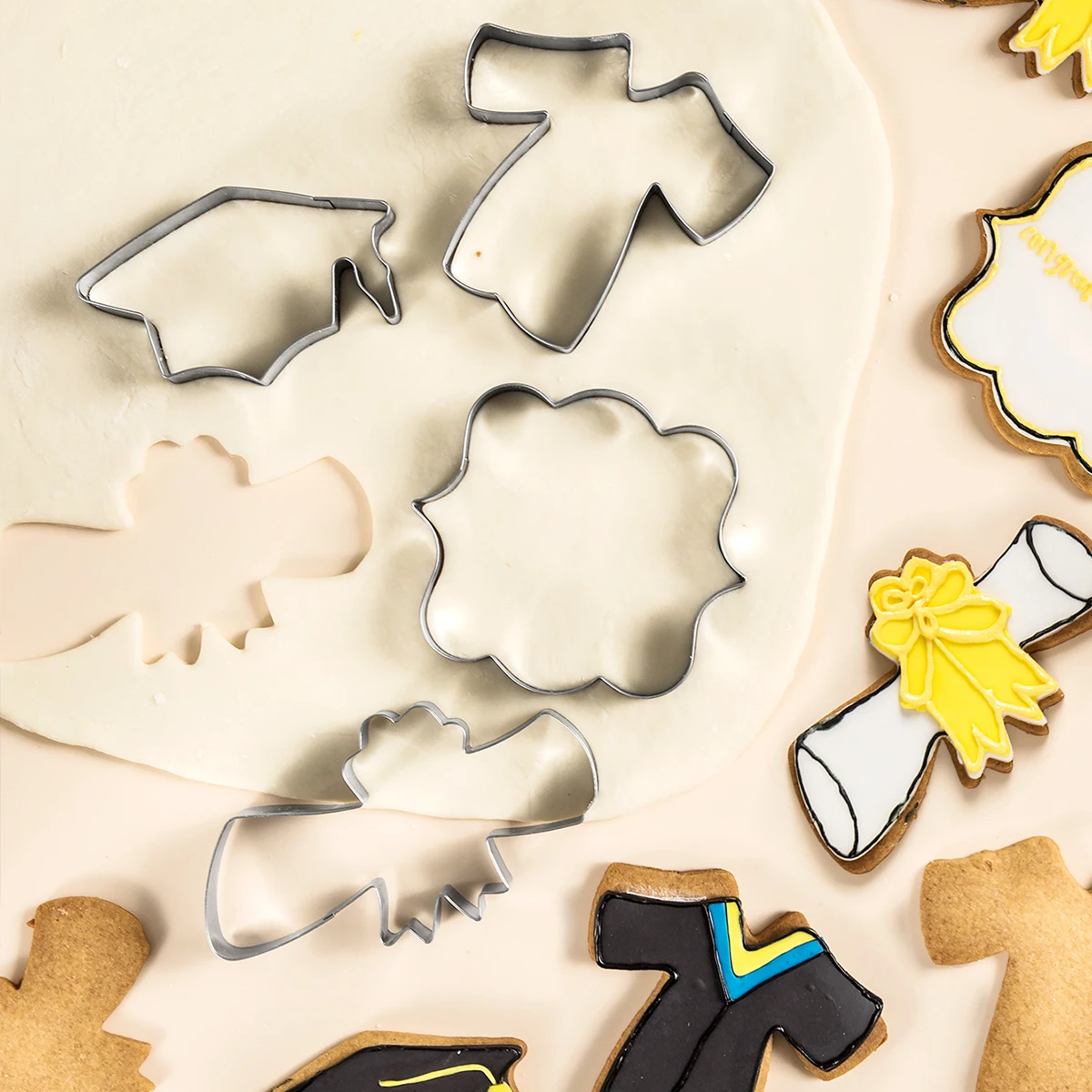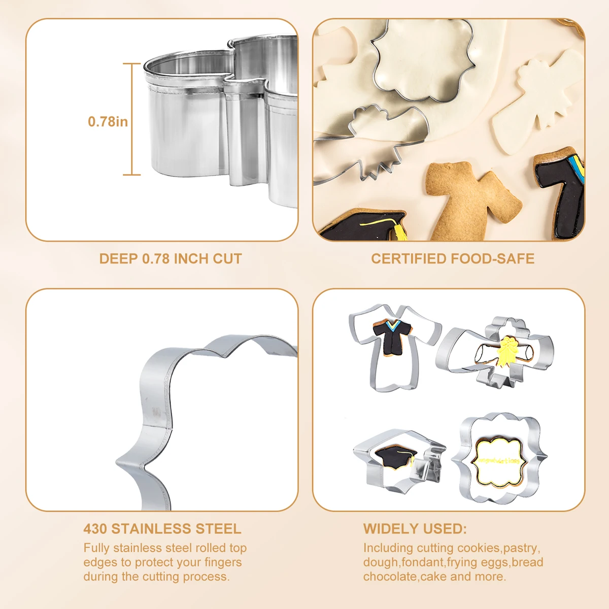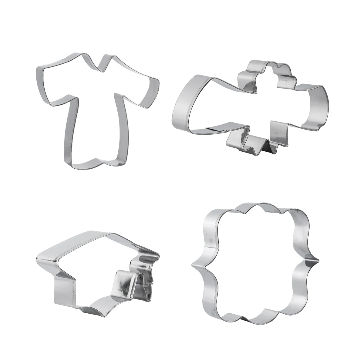 4 Piece Cookie Cutters Graduation Cookie Cutter Stainless Steel Cookie Molds Set with Graduation Cap Graduation Gown and Diploma | ||||||||