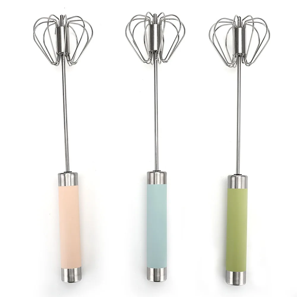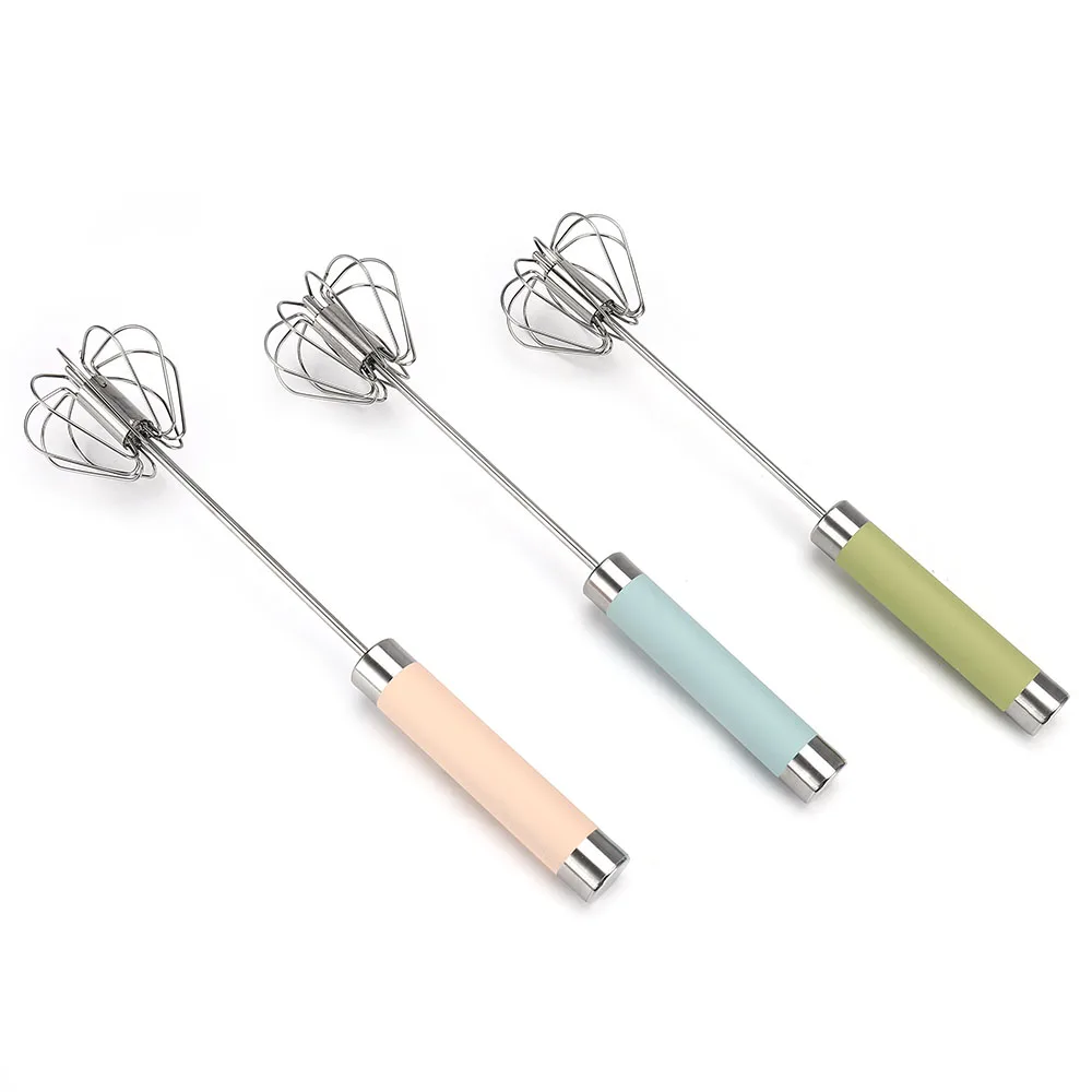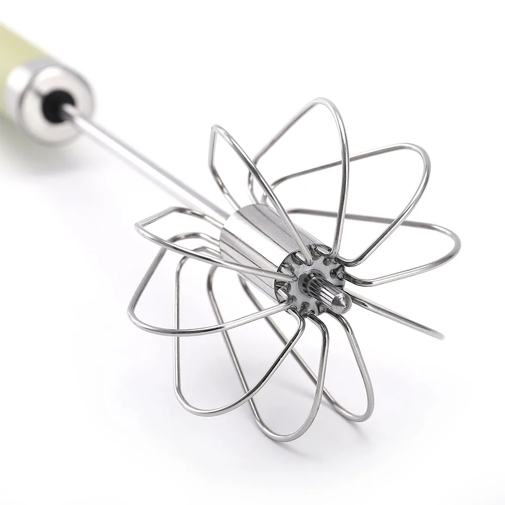 Stainless Steel Milk Frother Egg-Beater Rotary Egg Beater Whisk Blender Hand Push Whisk | ||||||||