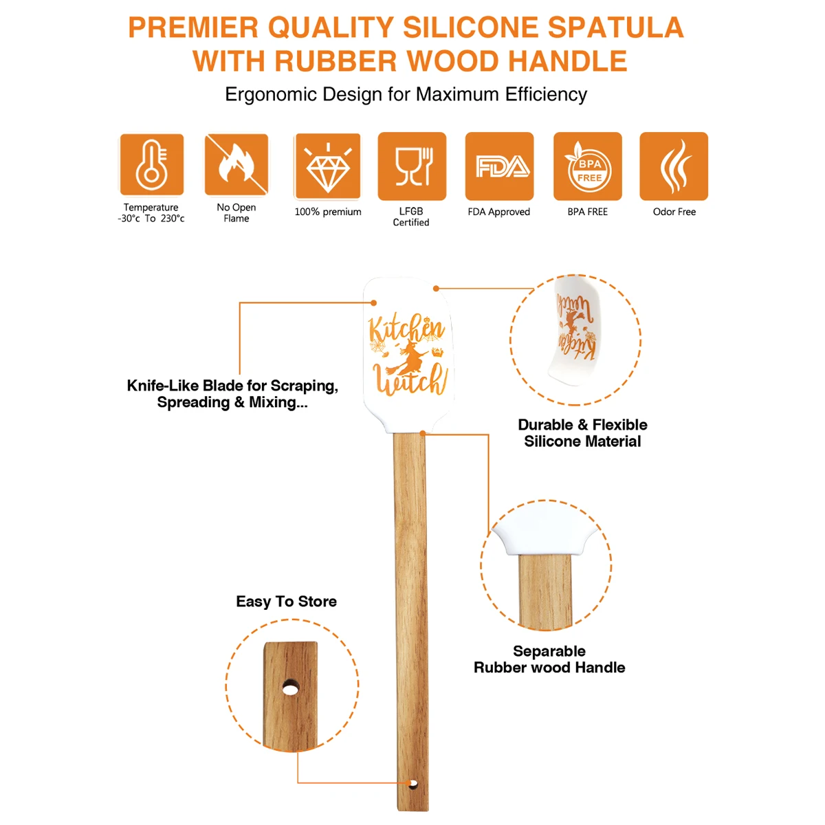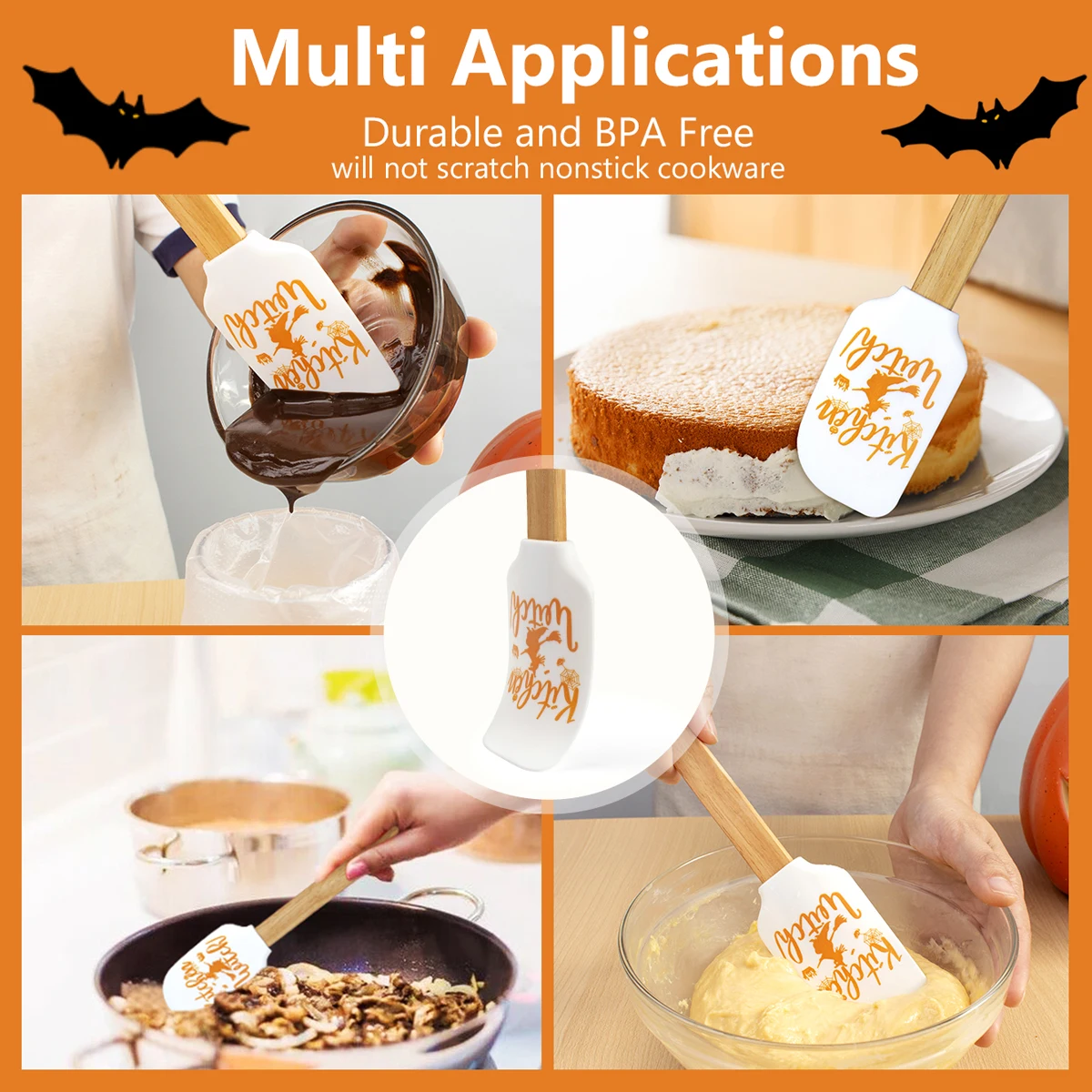 Halloween Silicone Baking Spatula Set Non-Stick Baking Spatulas Flexible Spatula with Wooden Handle for Cooking | ||||||||
