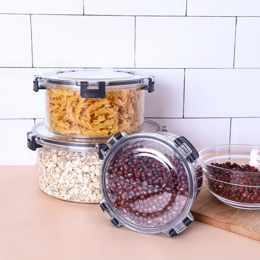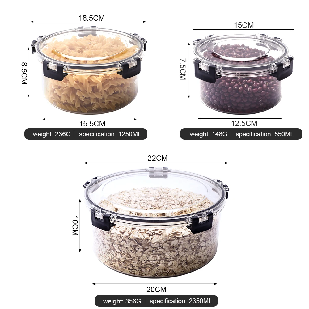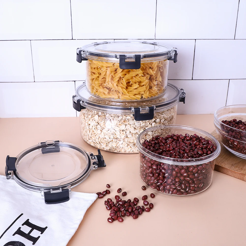 Plastic Fridge Organizer Round Clear Food Storage Dry Food Storage Containers Set with Locking Lid | ||||||||