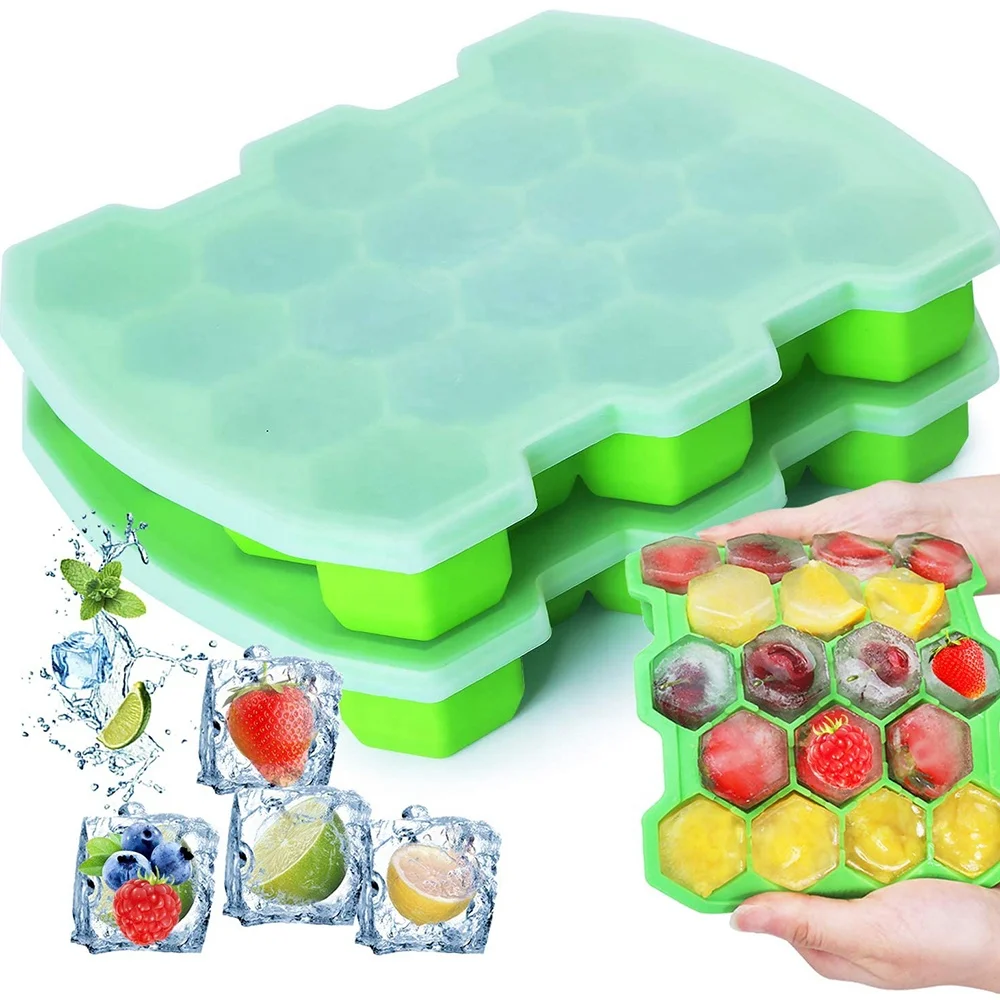 Custom Logo Honeycomb Shaped Flexible Silicone Clear Ice Block Mould Mold Ice Cube Tray | ||||||||