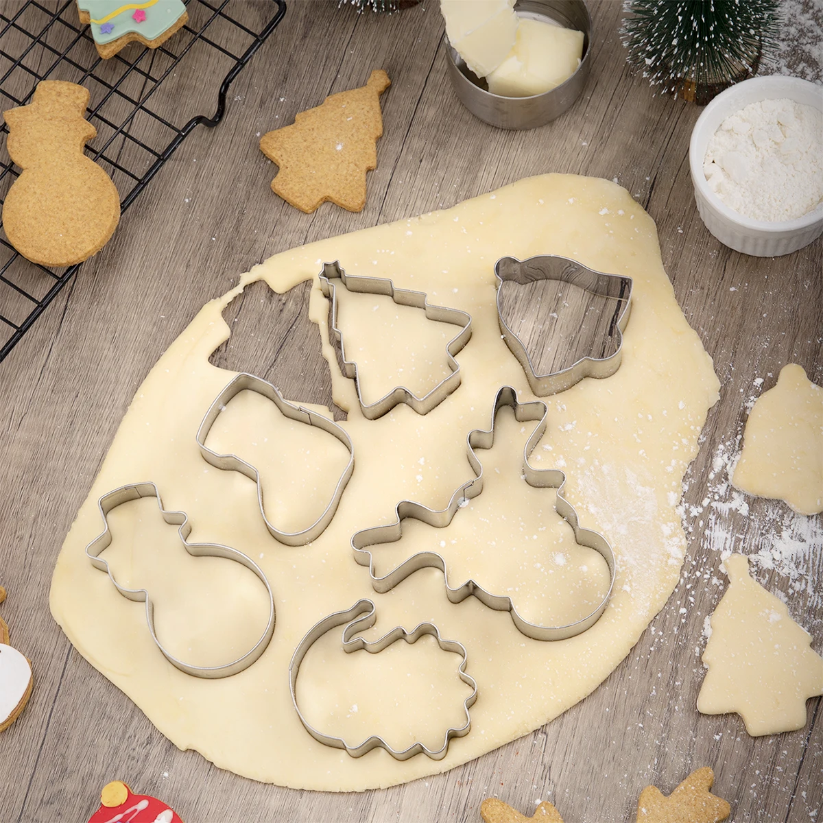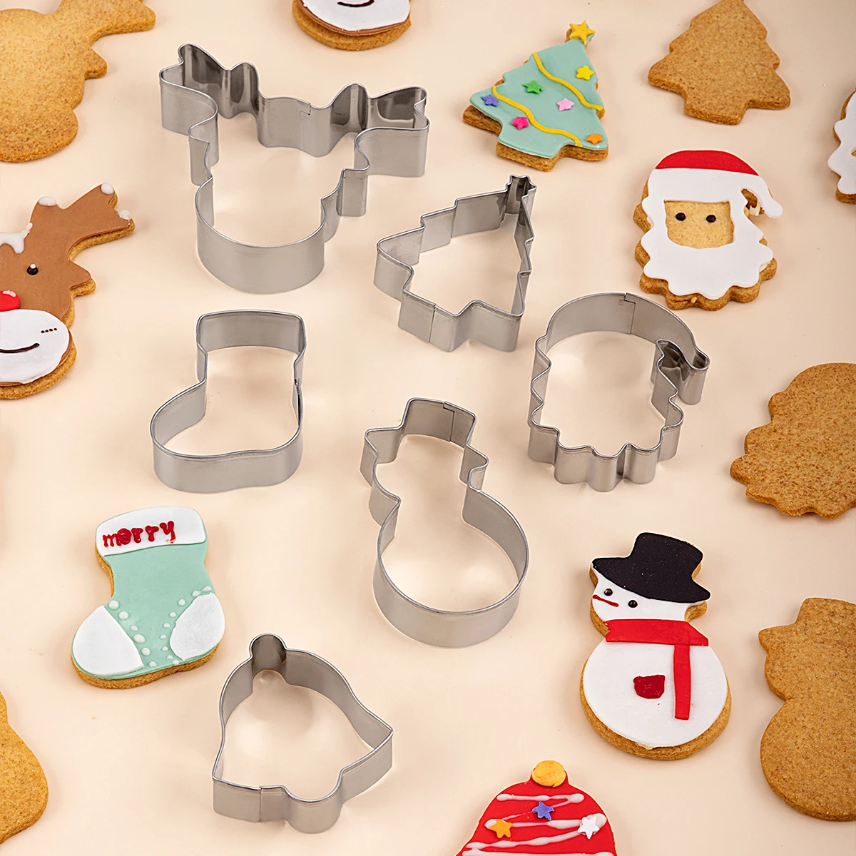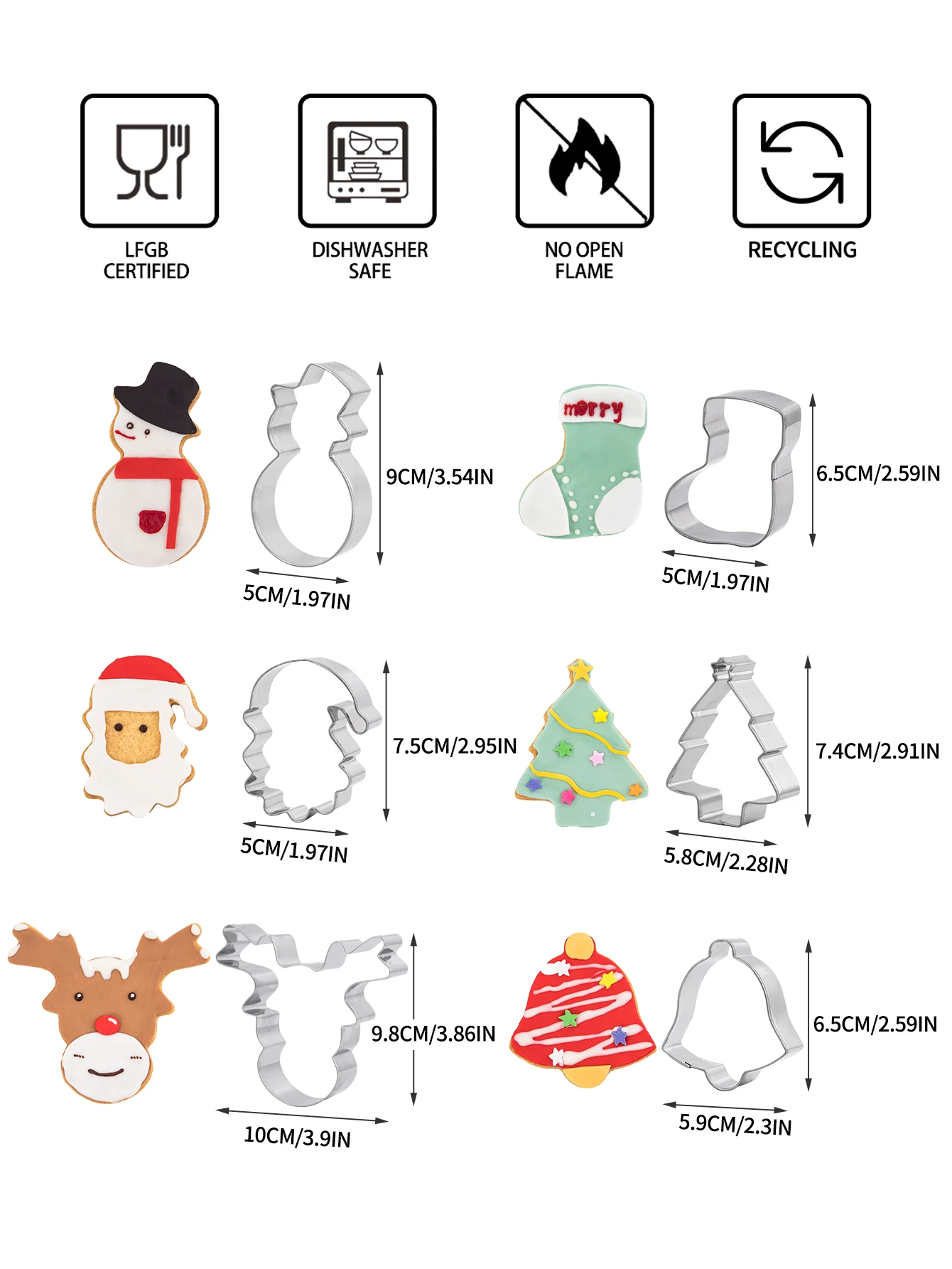 6PCS Christmas Cookie Cutters Stainless Steel Biscuit Cutter Snowman,Christmas Tree,Elk,Stockings Cookie Cutters for Biscuit | ||||||||