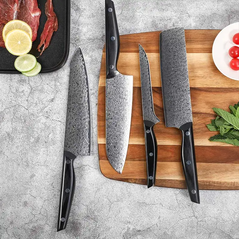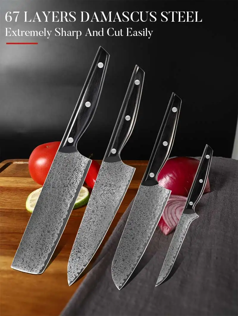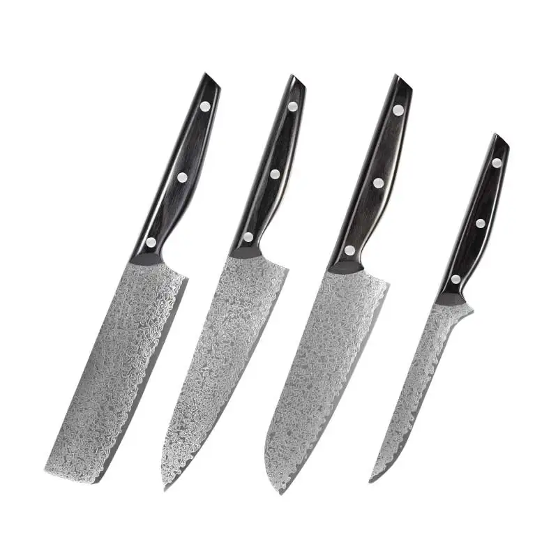 4 Pcs High Carbon with Black Pakkawood Handle Kitchen Knife Set 67 Layers Damascus Steel Carving Knives Chef Knife Set with Box | ||||||||