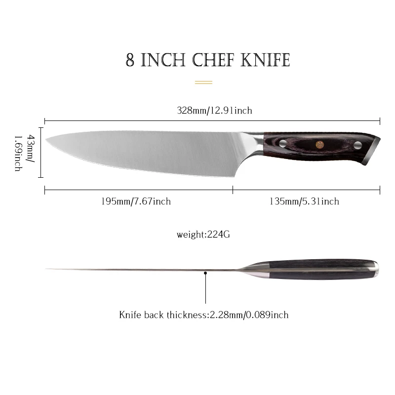 8 Inch High Quality German 1.4116 Stainless Steel Meat Knife Sharp Kitchen Chef Knife | ||||||||