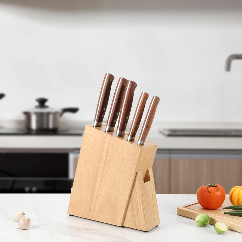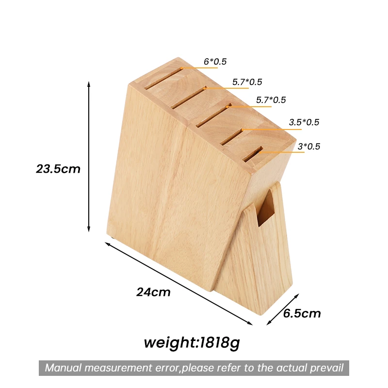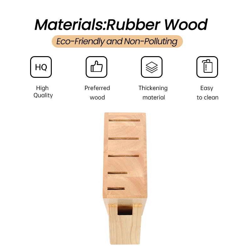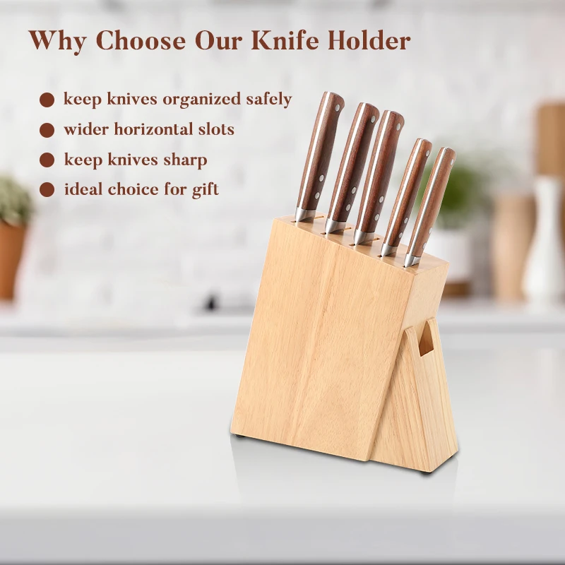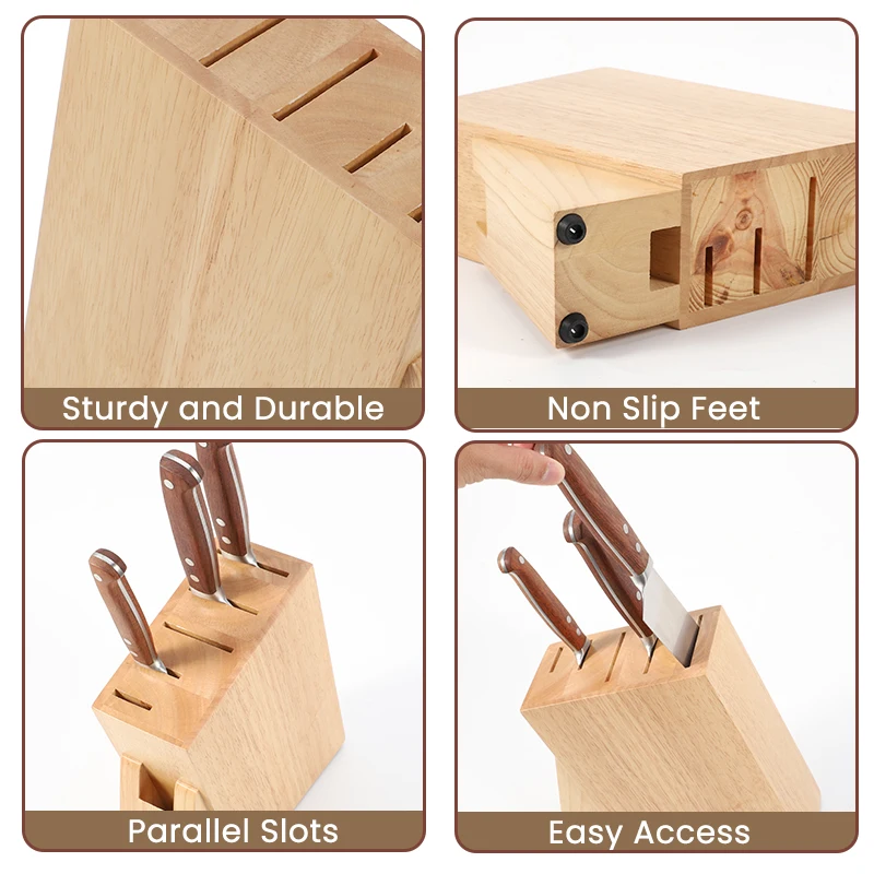 OEM Factory Natural 6 Slot Rubber Wood Kitchen Knife Block Wooden Storage Knife Block | ||||||||