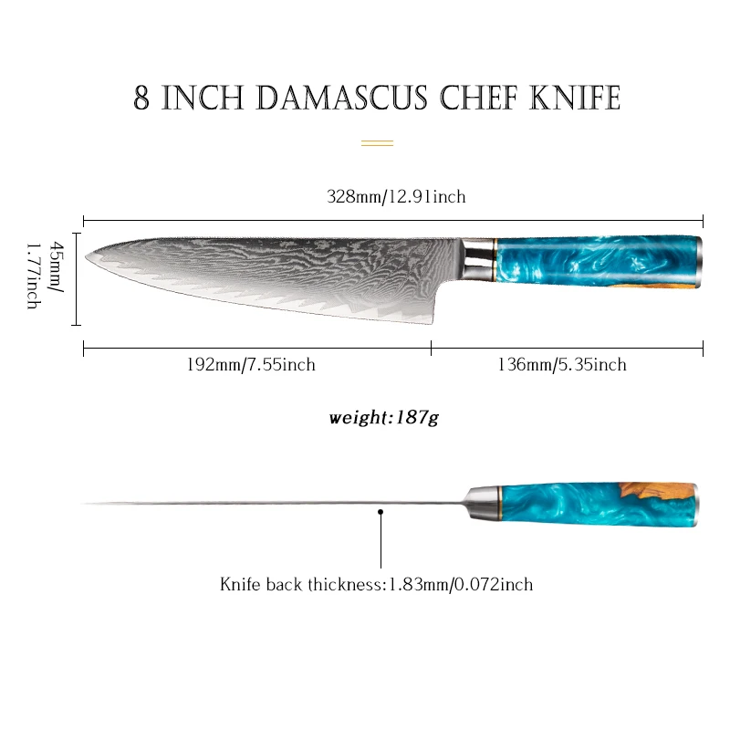 Manufacturers Handmade 8 inch Japanese Chefs Kitchen Knife Damascus Steel Knives | ||||||||