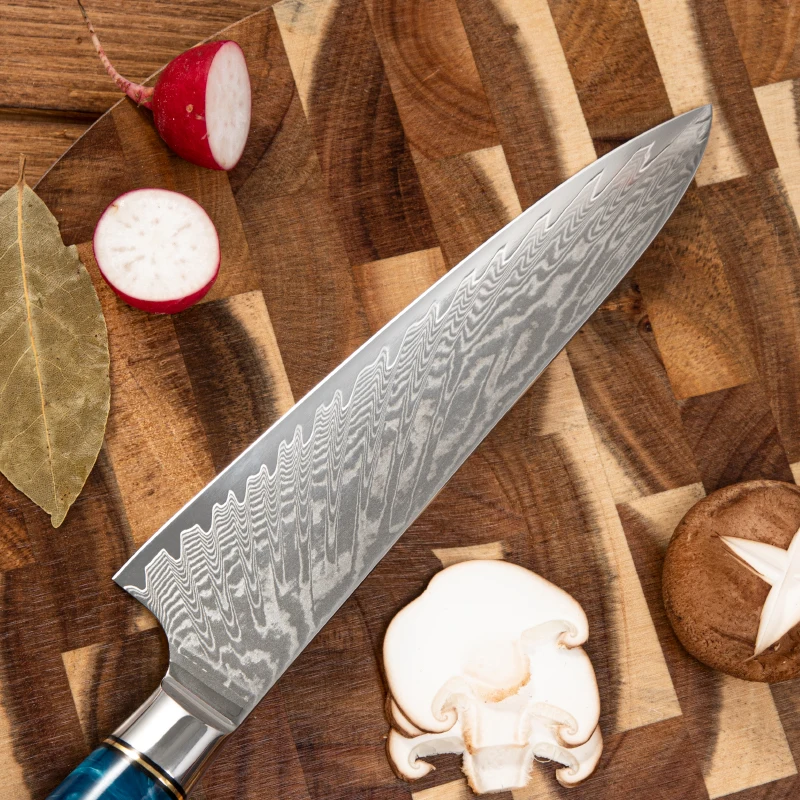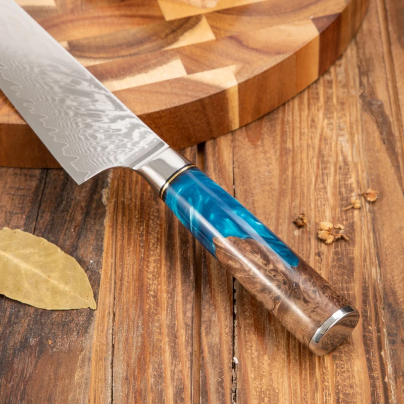9 Inch Handmade Luxury Colorful Blue Resin Handle Damascus Steel Knife Chef Kitchen Knives | ||||||||