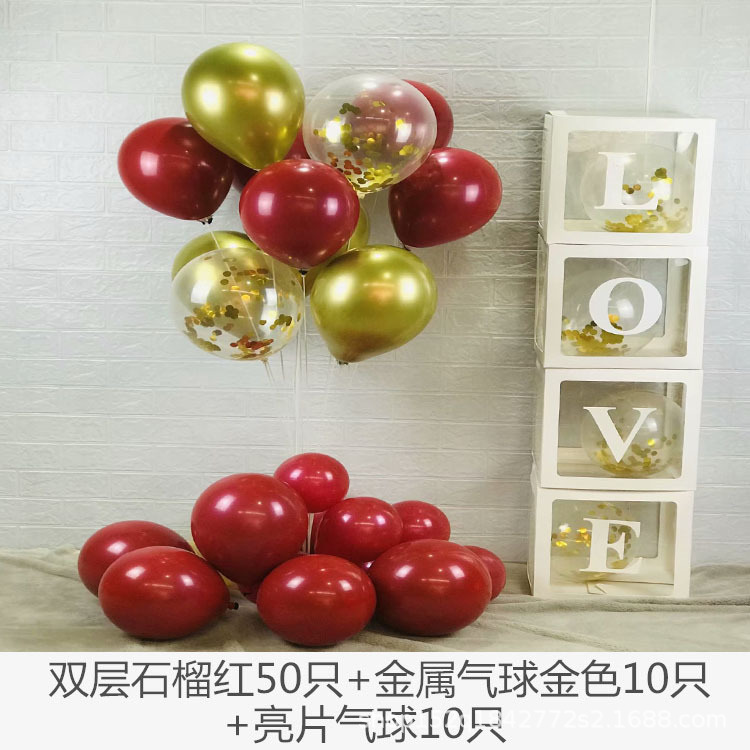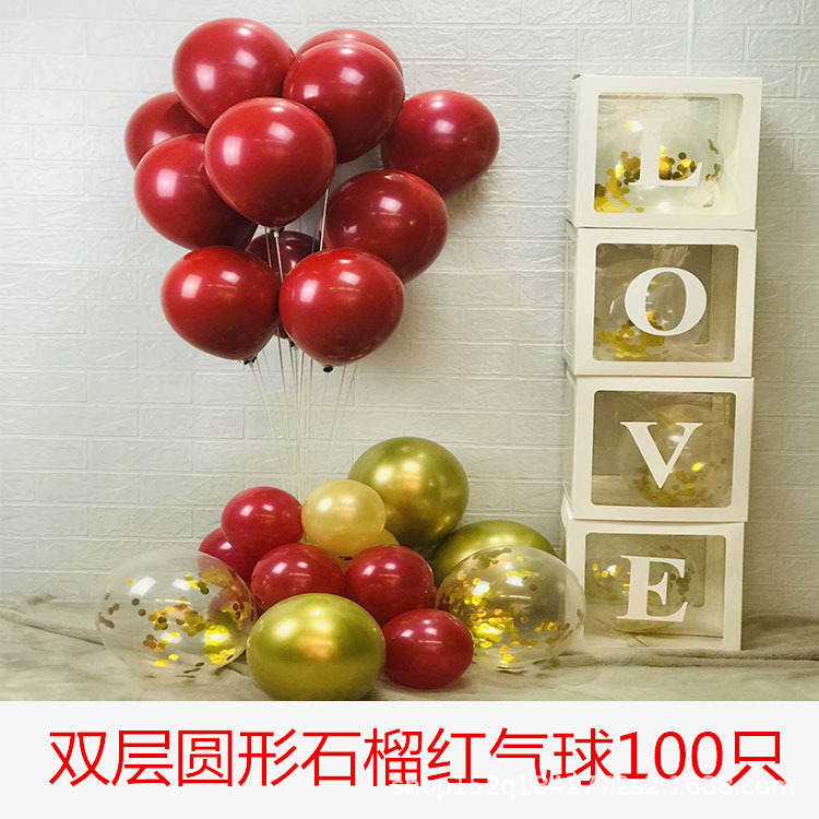 double-layer pomegranate red round + sequins + metal balloon