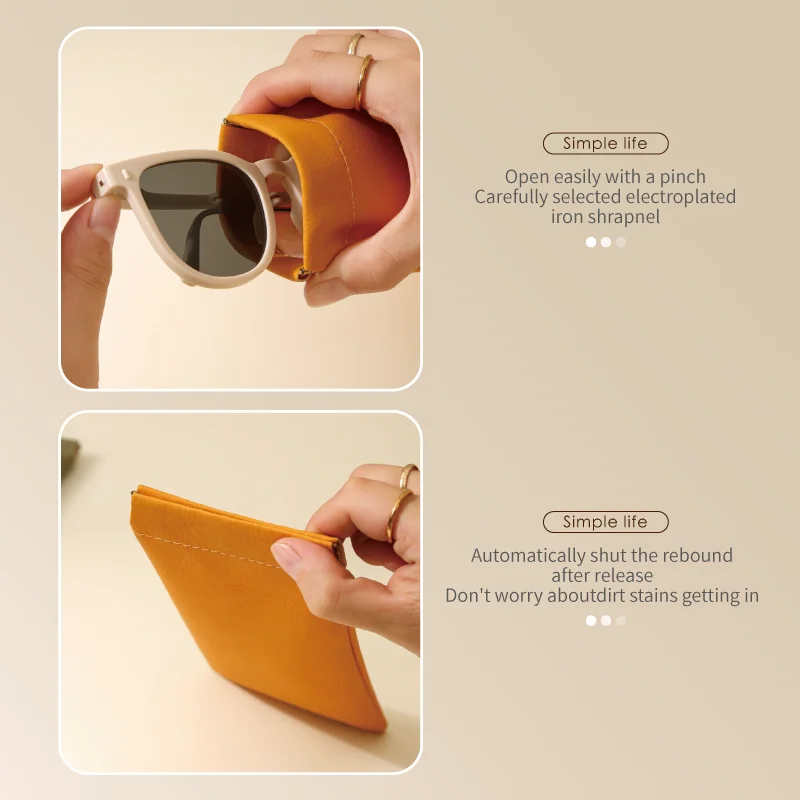 Luxury Leather Sunglass Case Custom Sunglasses Case Automatic closure of shrapnel opening Packaging Organizer Pouch