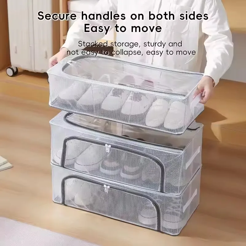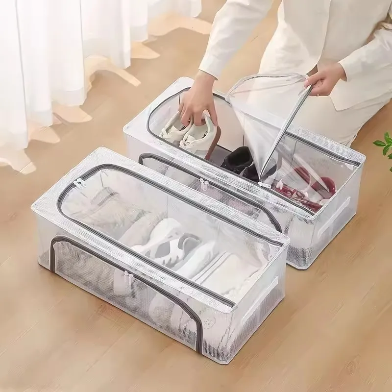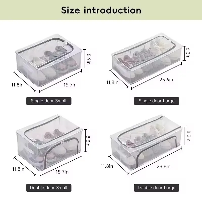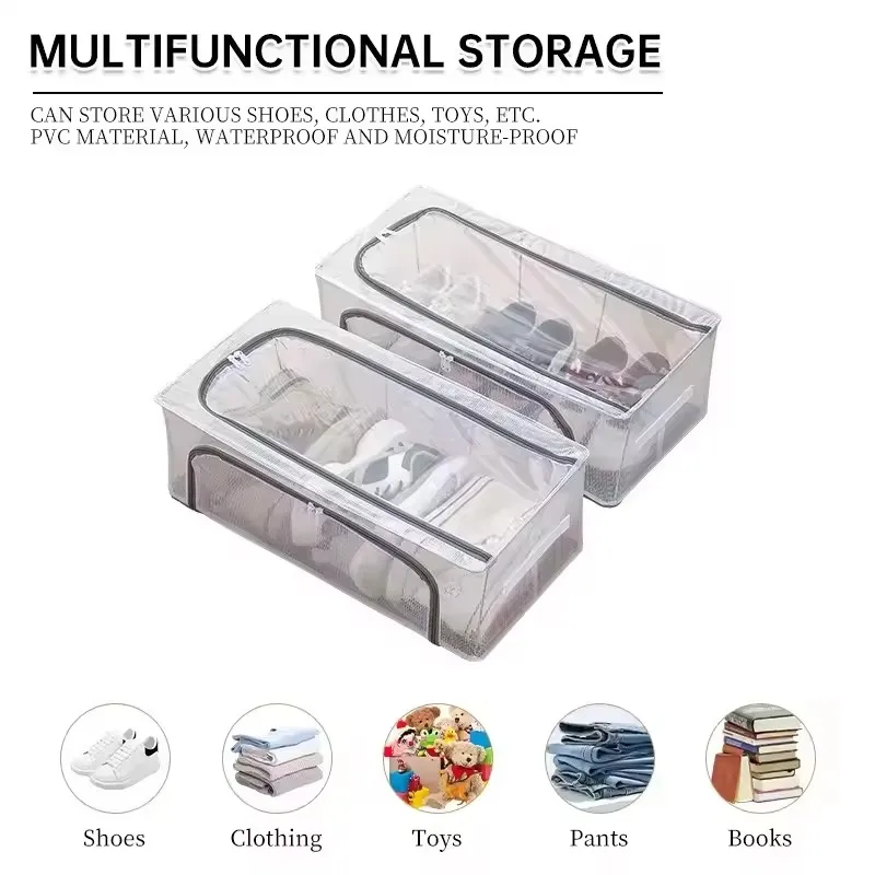 High Quality Mold Prevention Shoes Organizer Bins And Foldable Clear Transparent Shoe Storage Boxes Moisture With Steel Frame