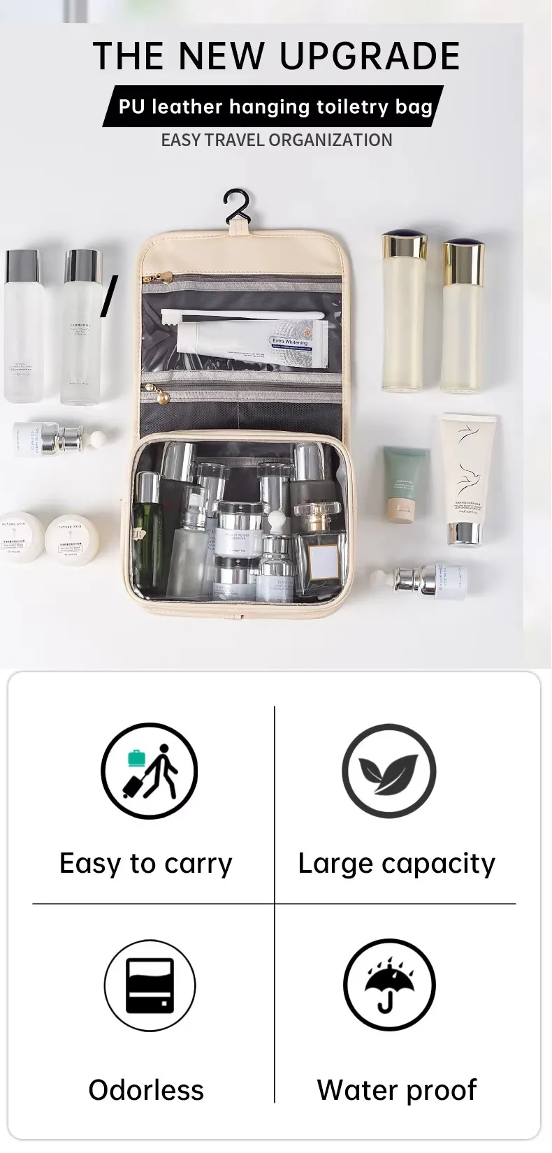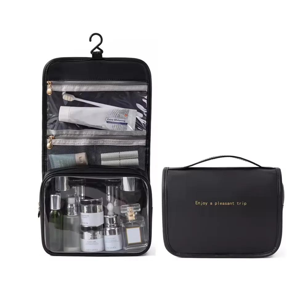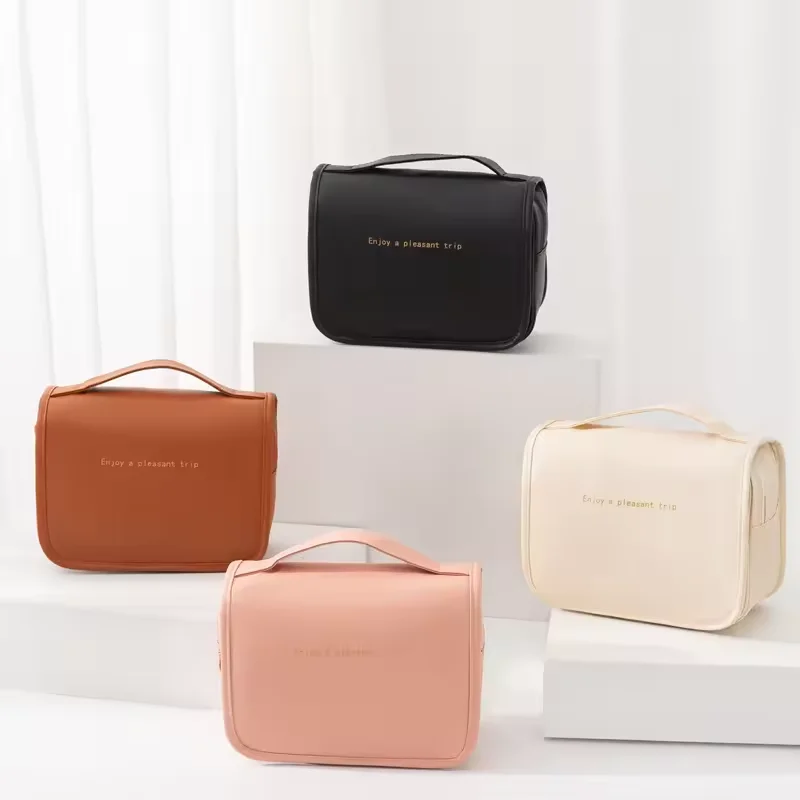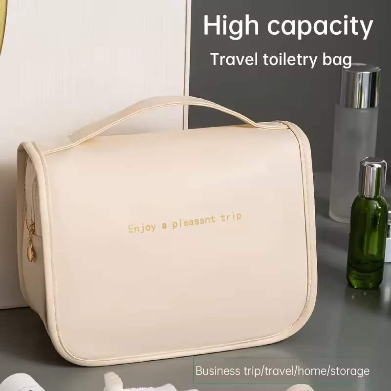 Cosmetic Bag Large Capacity Waterproof PU Hanging Zipper Beauty Makeup Toiletry Bag Travel