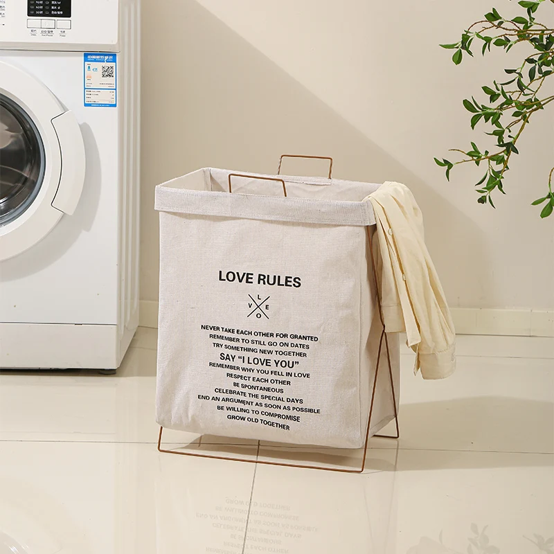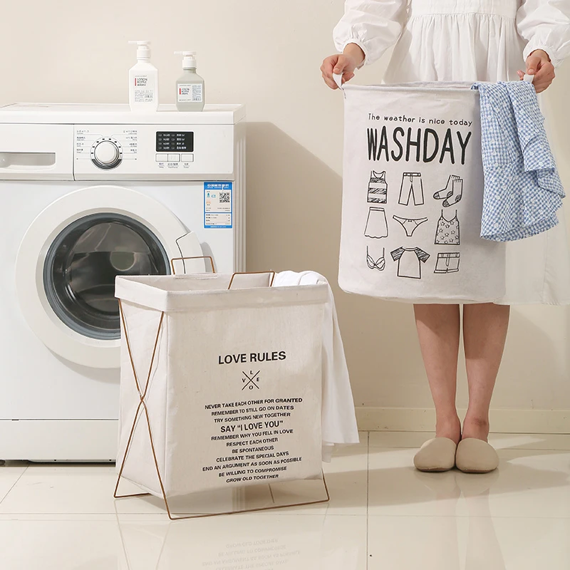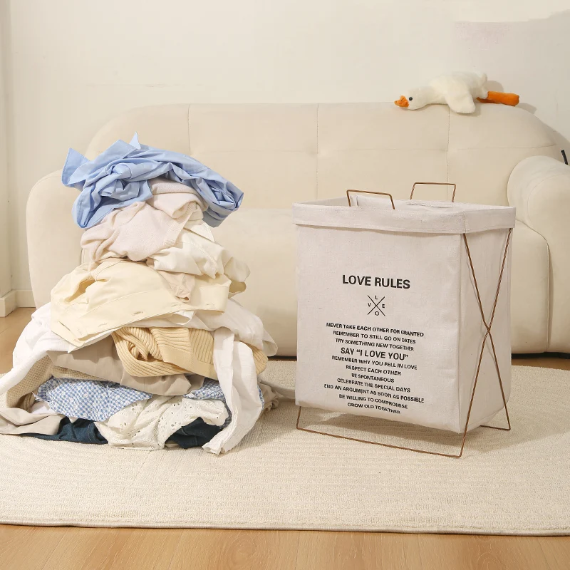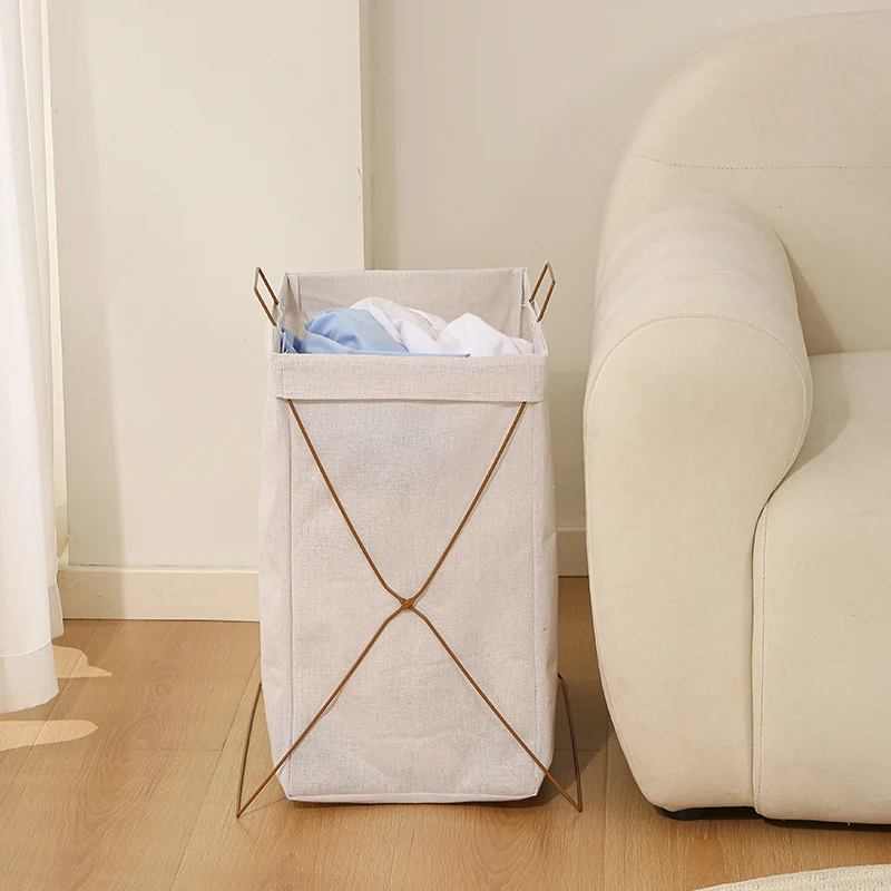 Foldable Travel Waterproof Storage Bag Set Iron Frame Cotton Linen Canvas Shopping Basket for Dirty Clothes