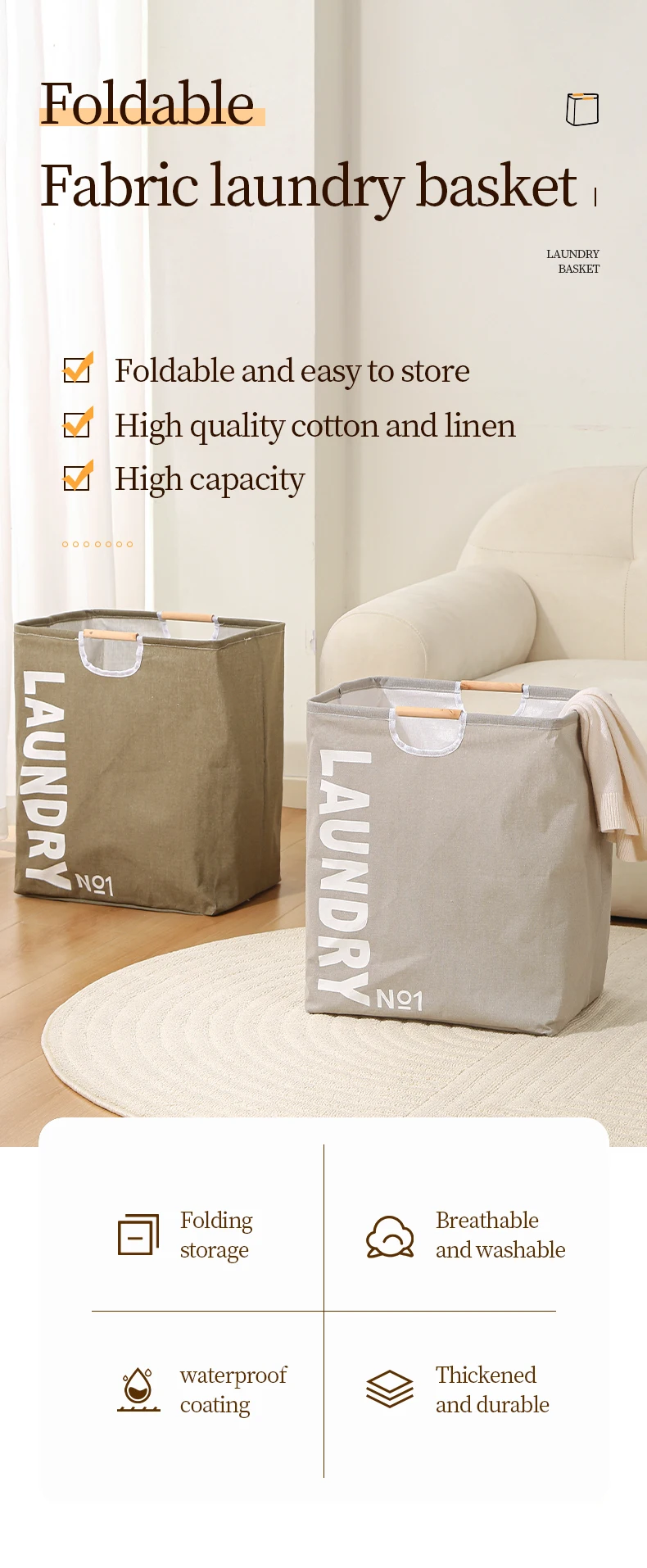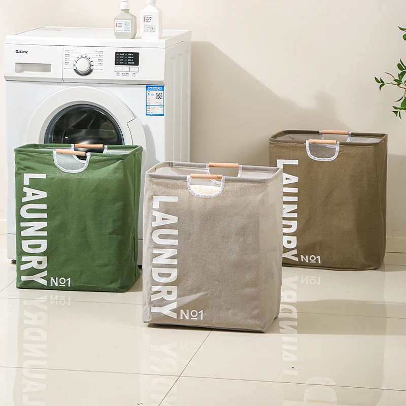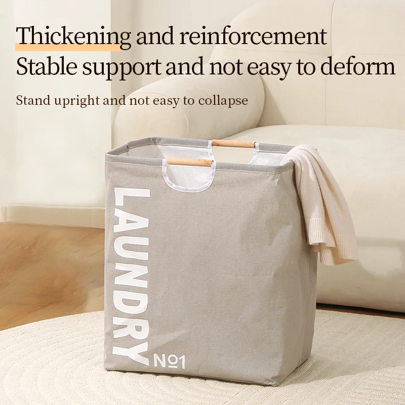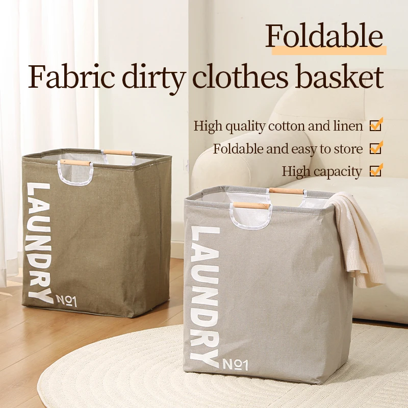 Fabric Laundry Basket Dirty Clothes Collapsible Laundry Hamper with Wooden Handle