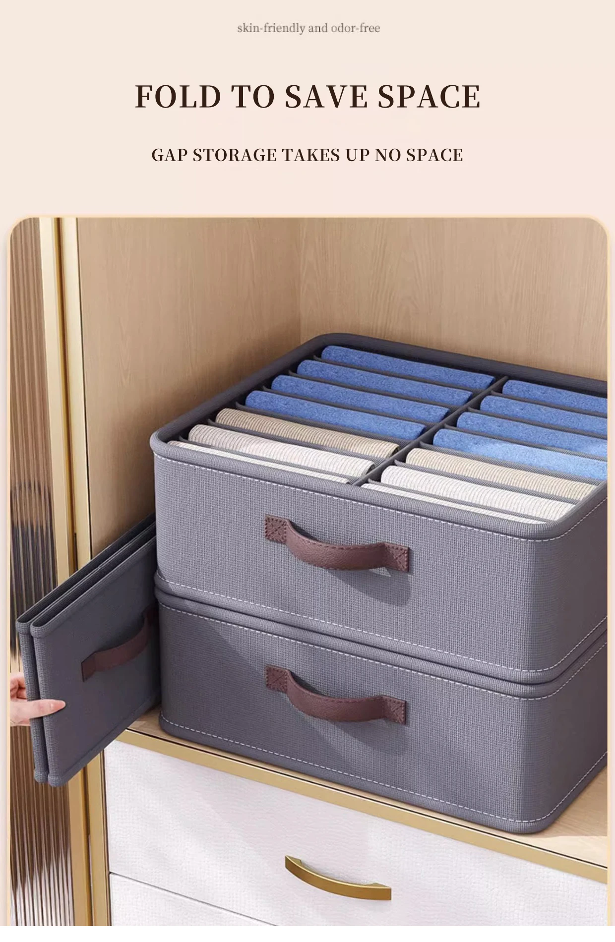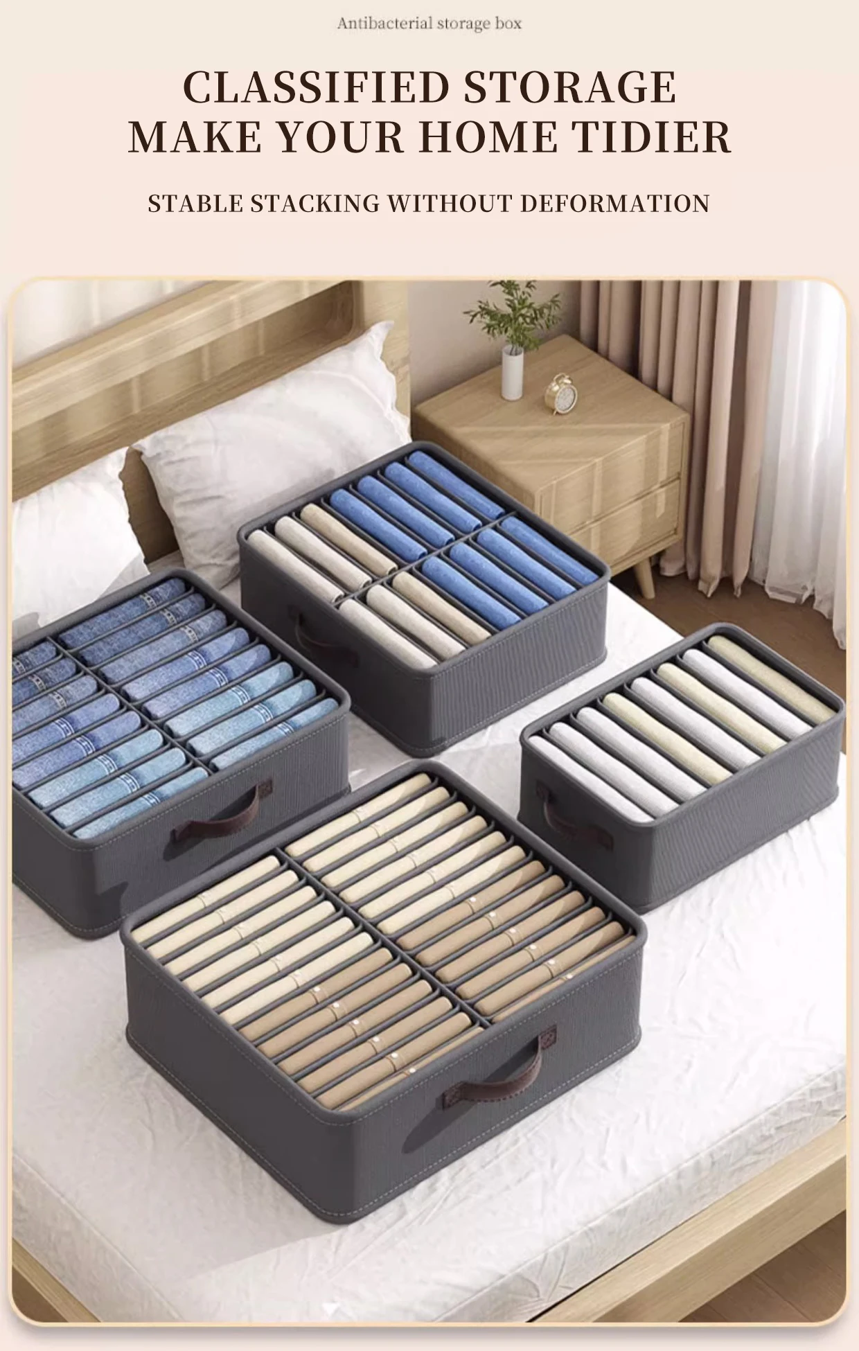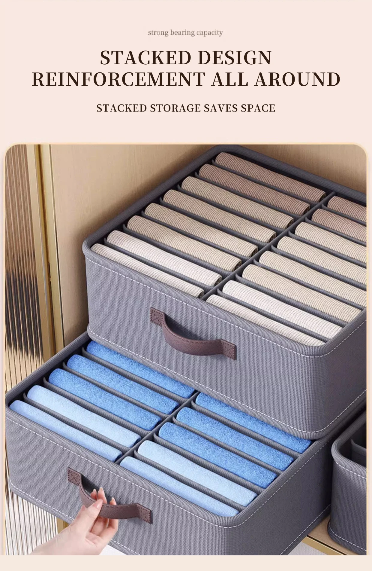Foldable 24 Grids Cabinet Drawer Organizer Underwear Pants Socks Wardrobe Clothes Organizer with Handle