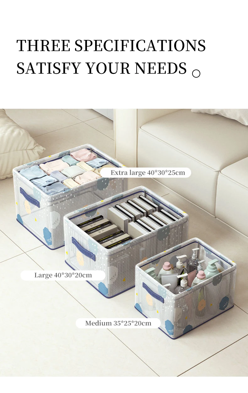 Large Size Foldable Drawer Organizer for Clothes or Socks Fabric Storage Bins with Handle Under Bed Steel Frame Storage Box