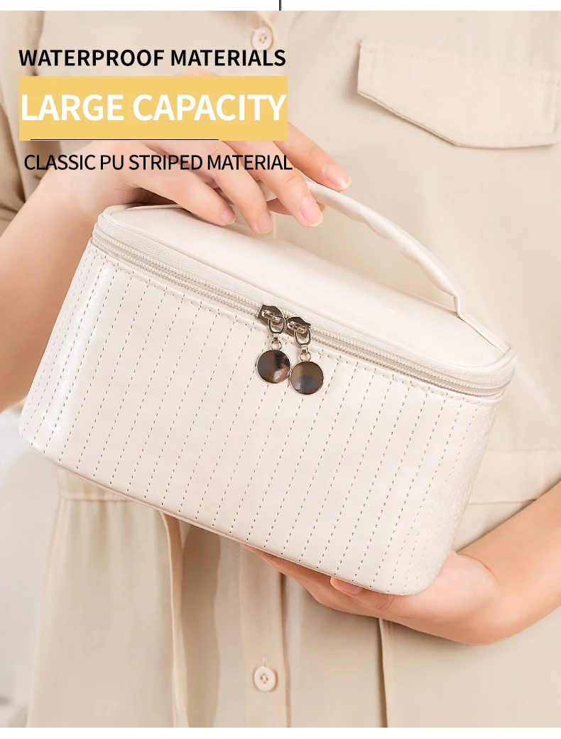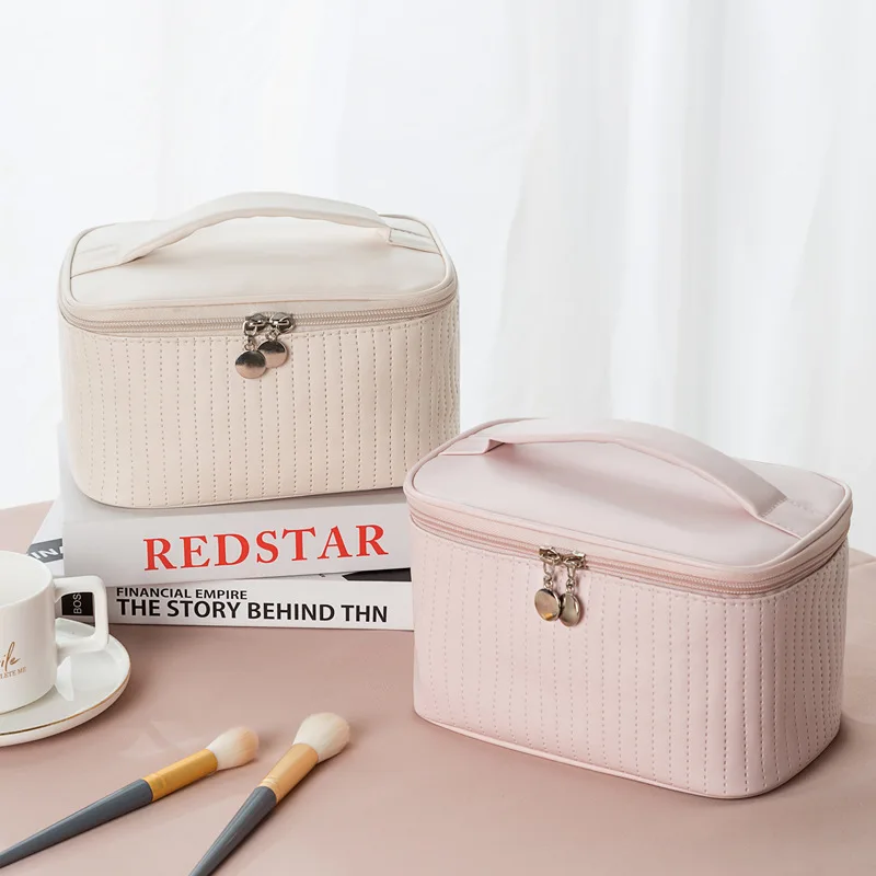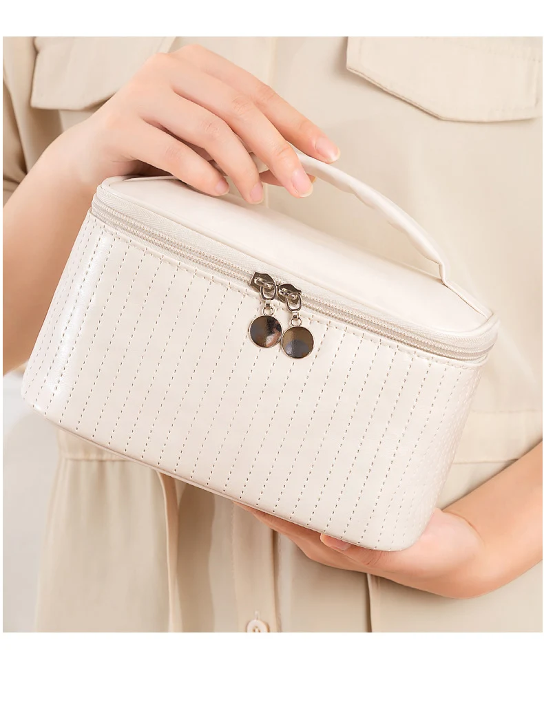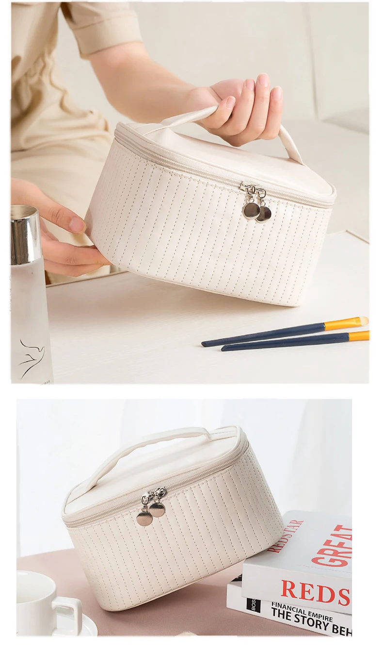 Lady's Elegant Handbag Portable Large Capacity Pu Leather Cosmetic Box Waterproof Cash Bag Zipper Bag Makeup Bags