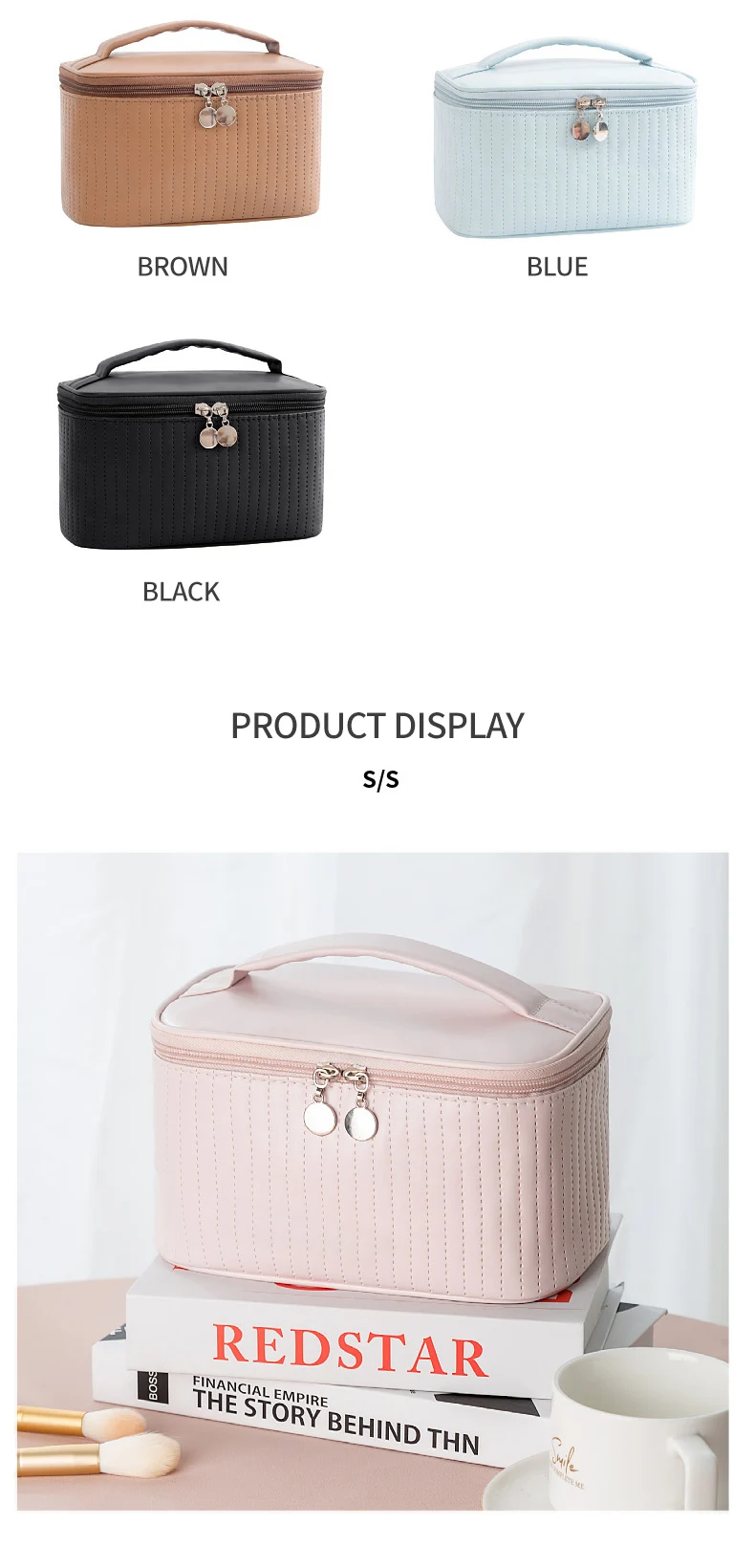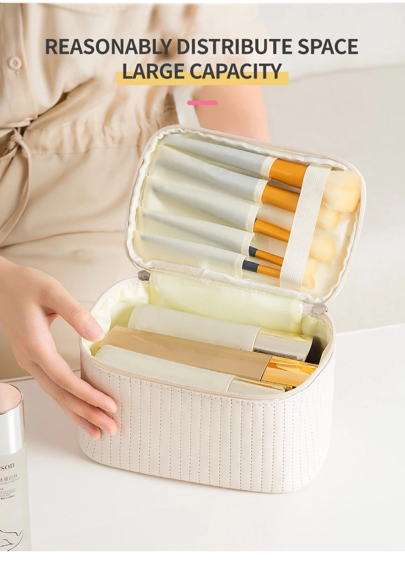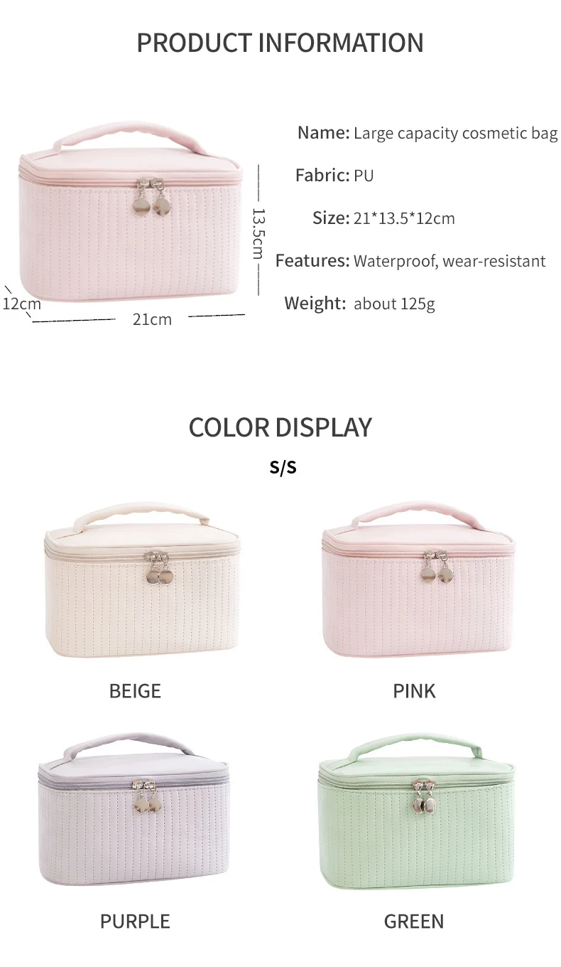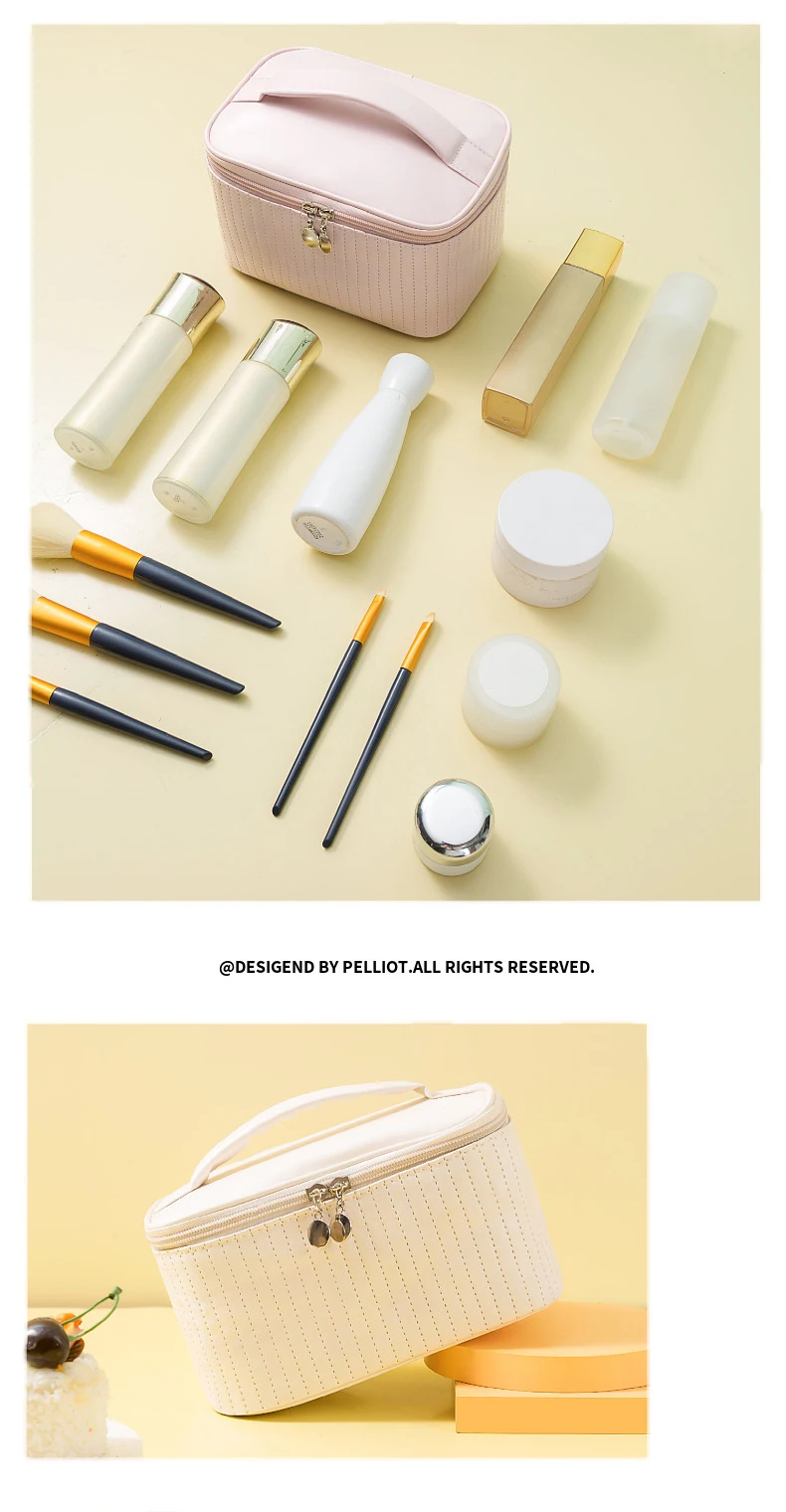 Lady's Elegant Handbag Portable Large Capacity Pu Leather Cosmetic Box Waterproof Cash Bag Zipper Bag Makeup Bags