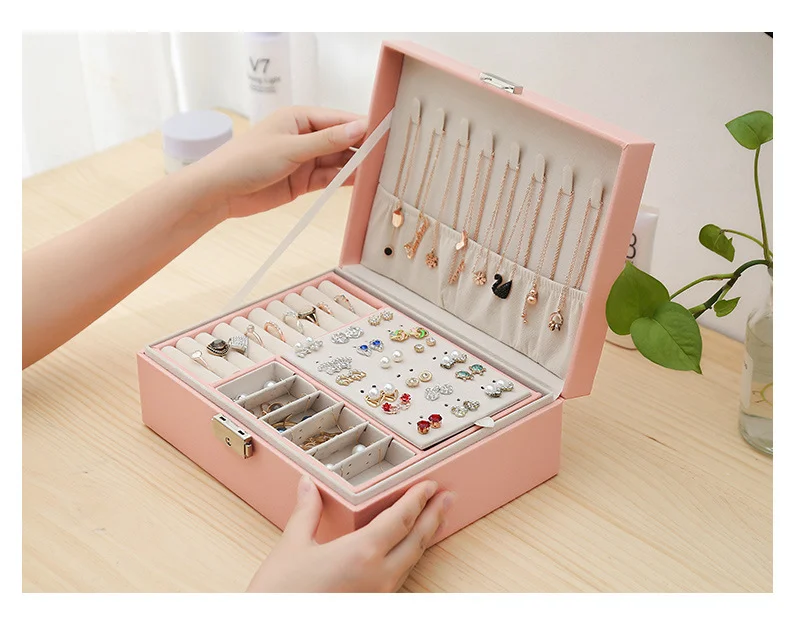 2 Layers Pu Leather Jewelry Storage Box Jewelry Storage Organizer Box for Earring Ring Necklace Bracelets