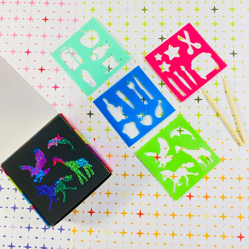 Details | • Material: 0.25mm card/100 sheets; stencils/4 pcs; scratch tool/2 pcs • Change your design as often as you like! | |||||