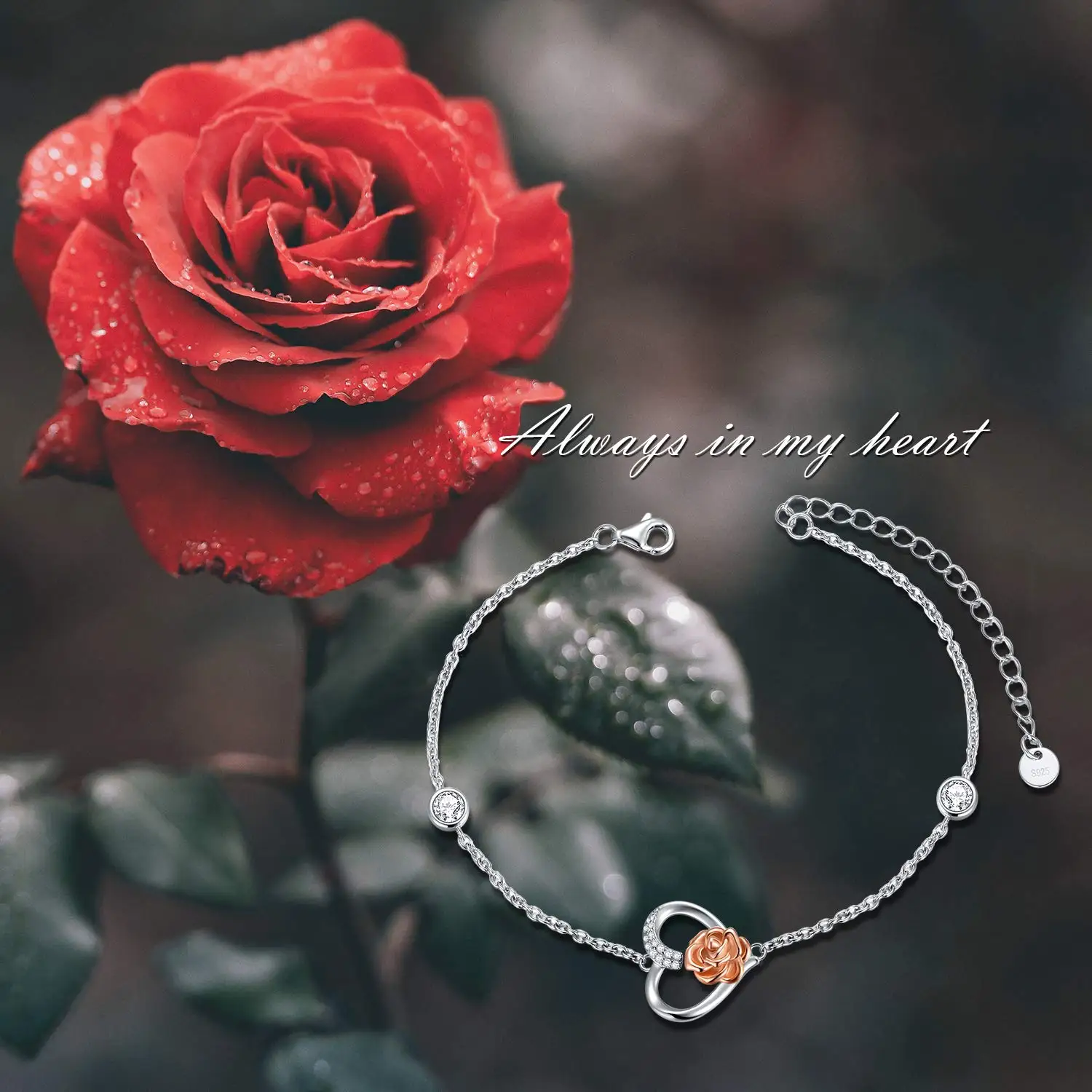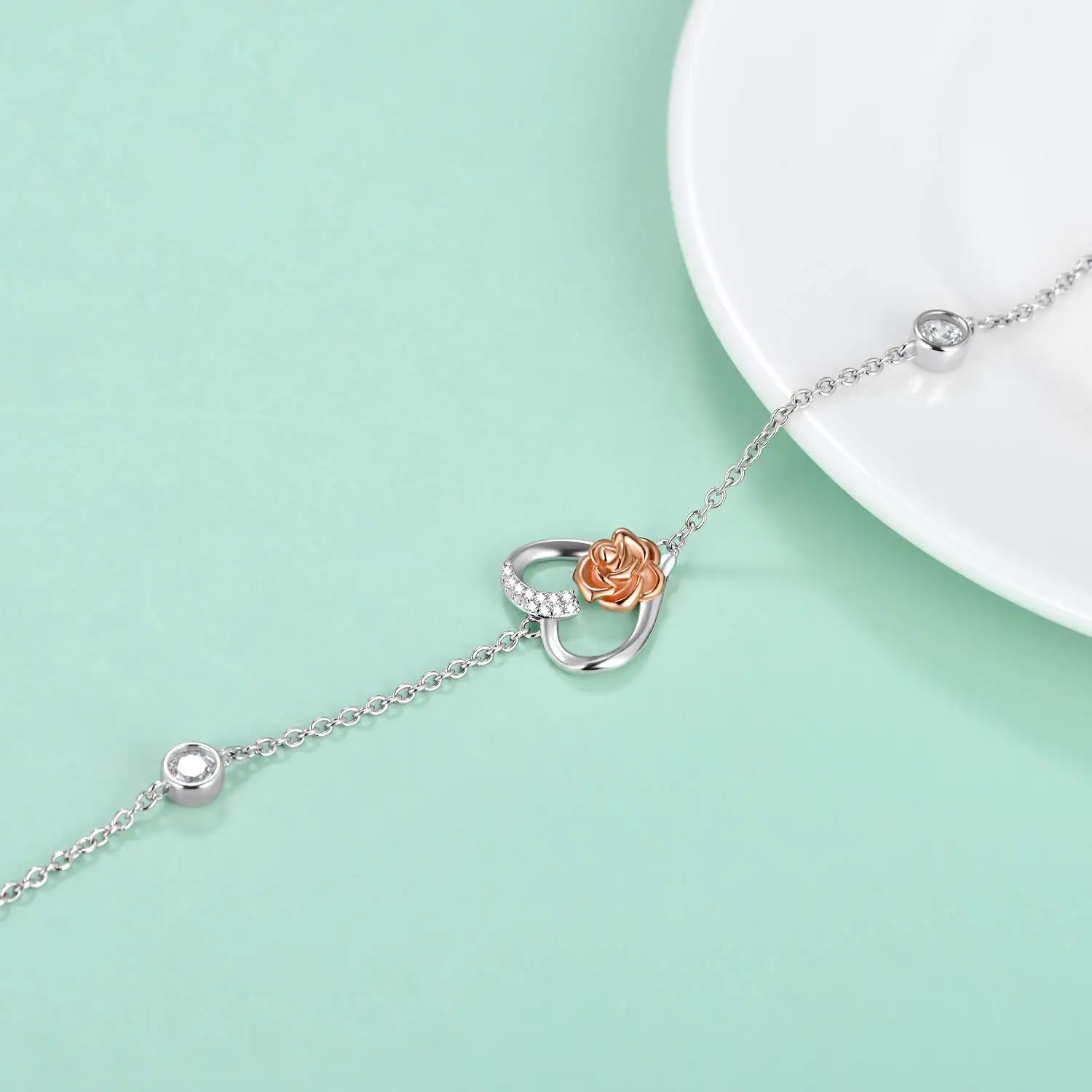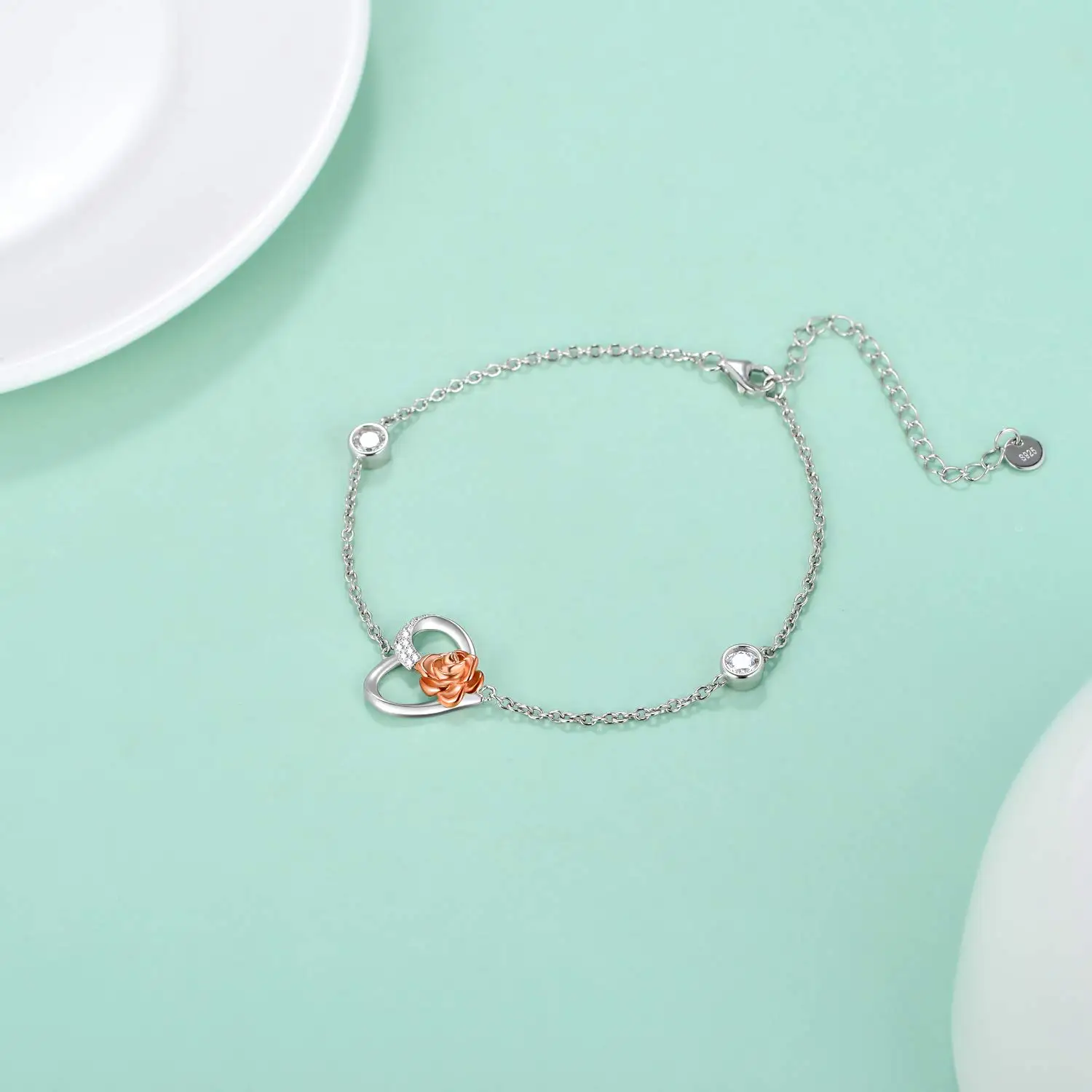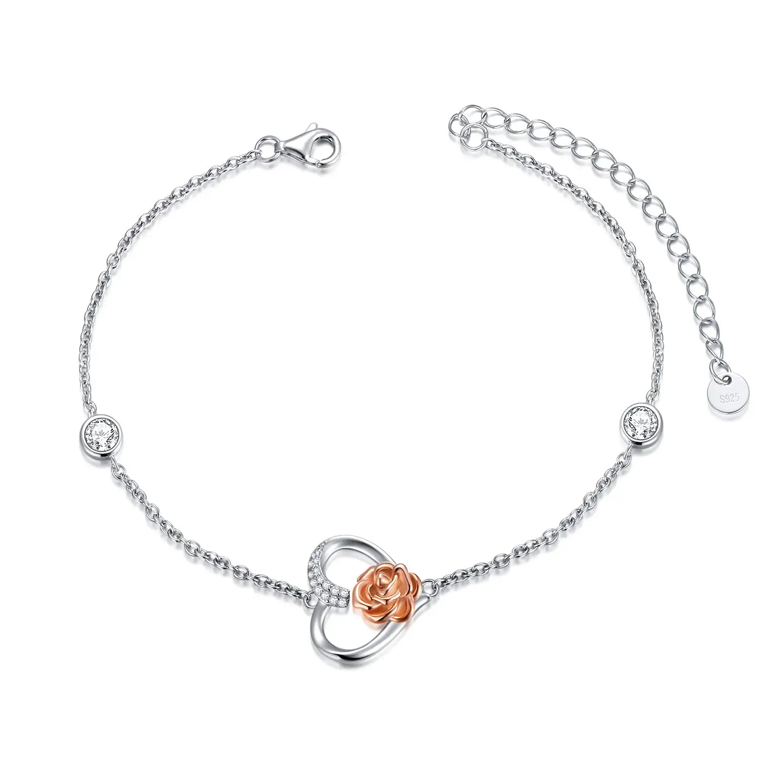 Factory Sale 925 Sterling Silver Rose Flower Heart Bracelet for Women Birthday Gift